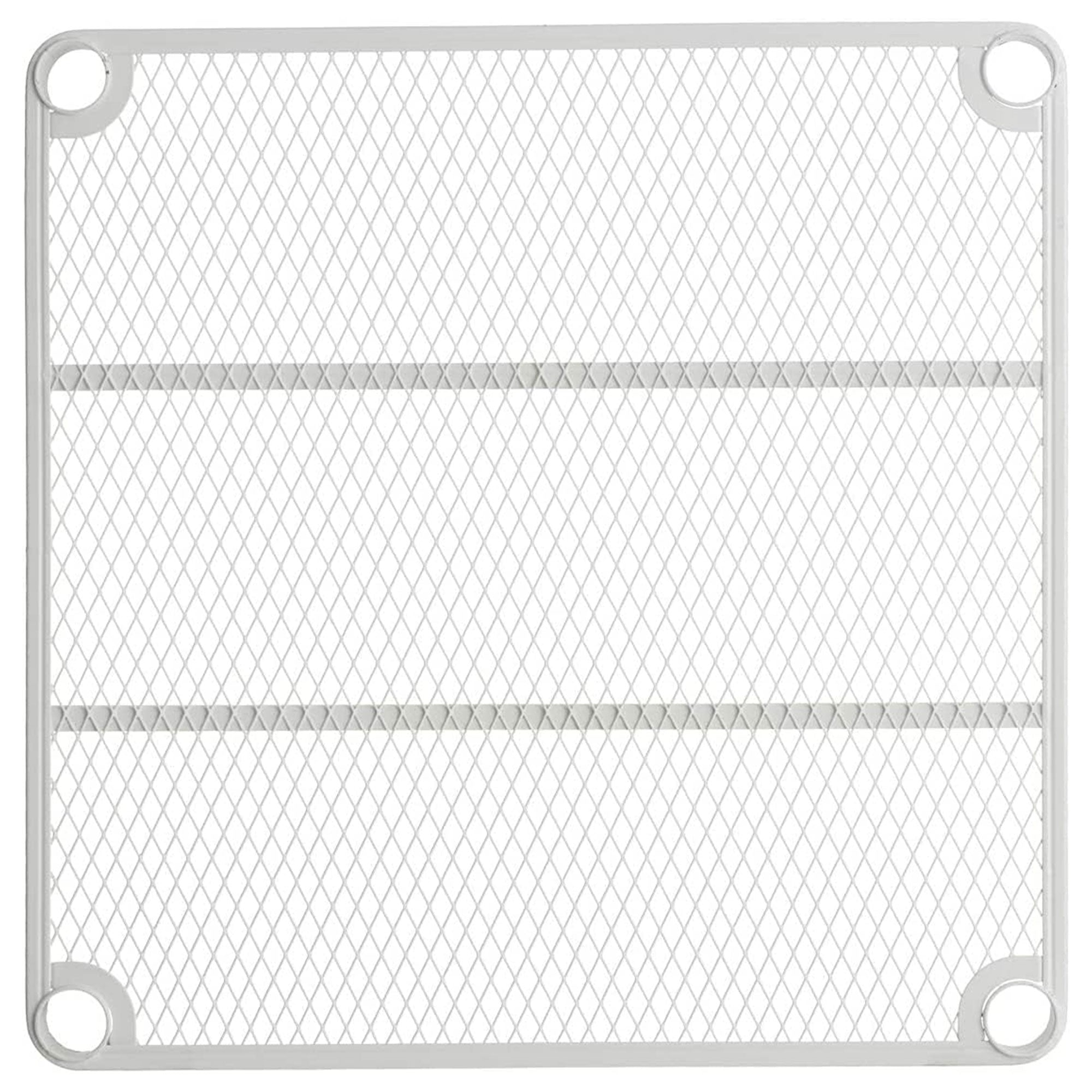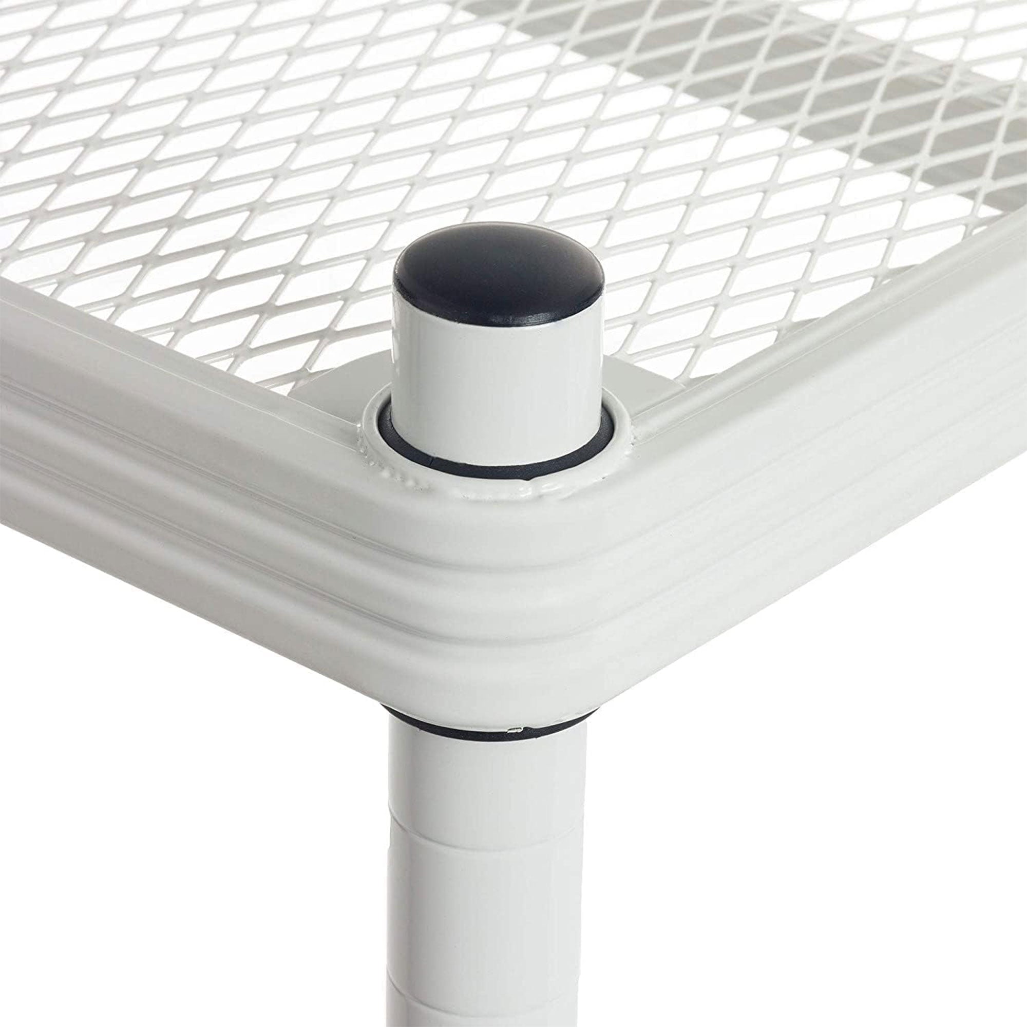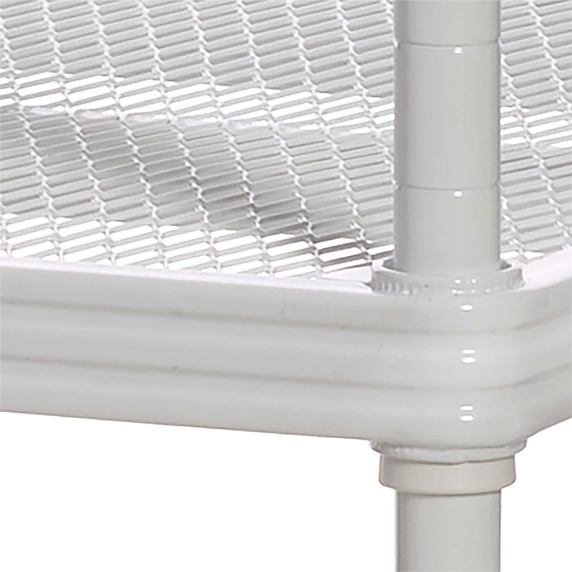 Featuring a heavy-duty steel metal mesh design and epoxy coating, each shelf from this standing shelf unit is capable of holding up to 440 pounds. With the expanded metal mesh shelving, this multipurpose display shelf rack will not let bottles, cans, or other small items fall through. The open design allows to you see your items from any angle, great for easy access. Use this shelving rack as a display for your favorite home decor, as storage for kids toys, and even for craft storage.