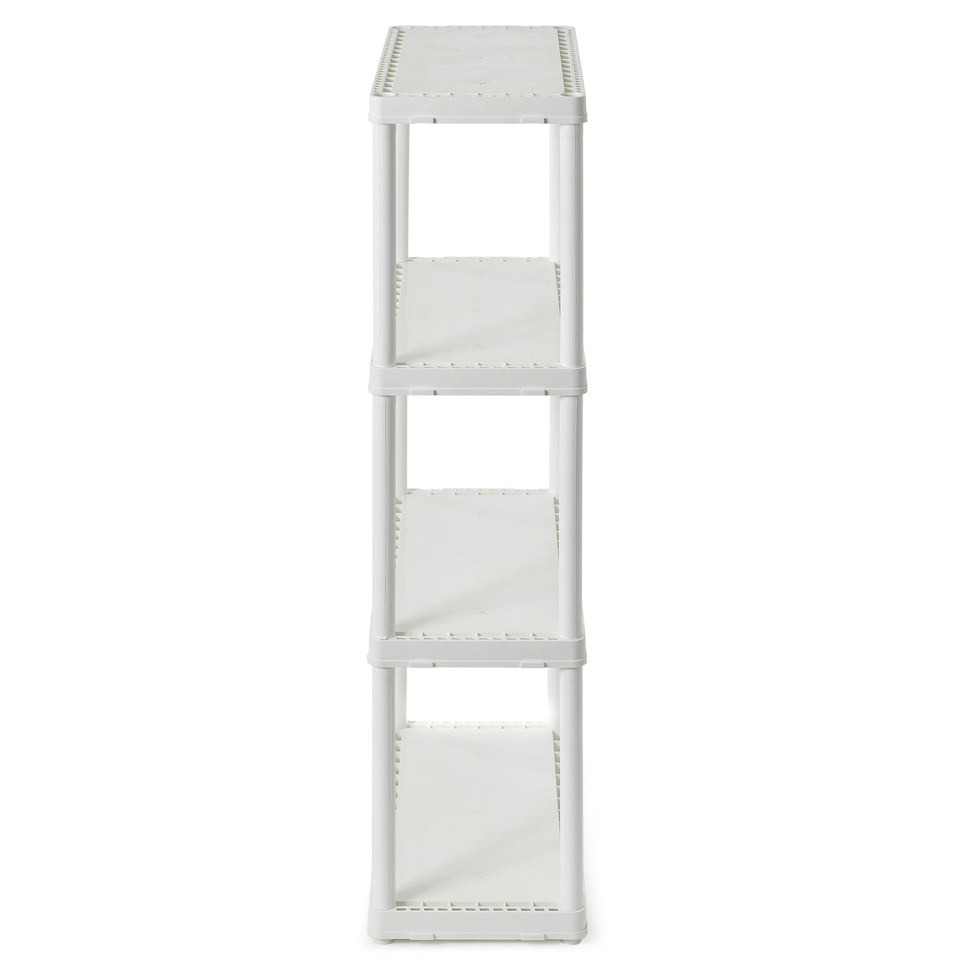 When you're short on closet space or need to organize the pantry, count on these 4-Tier Fixed Height Storage Shelving from Gracious Living to help you transform clutter into clean. These plastic storage shelves function as garage storage, a shelf organizer to display shoes, or even as a bookcase, allowing you to easily organize and store various items.