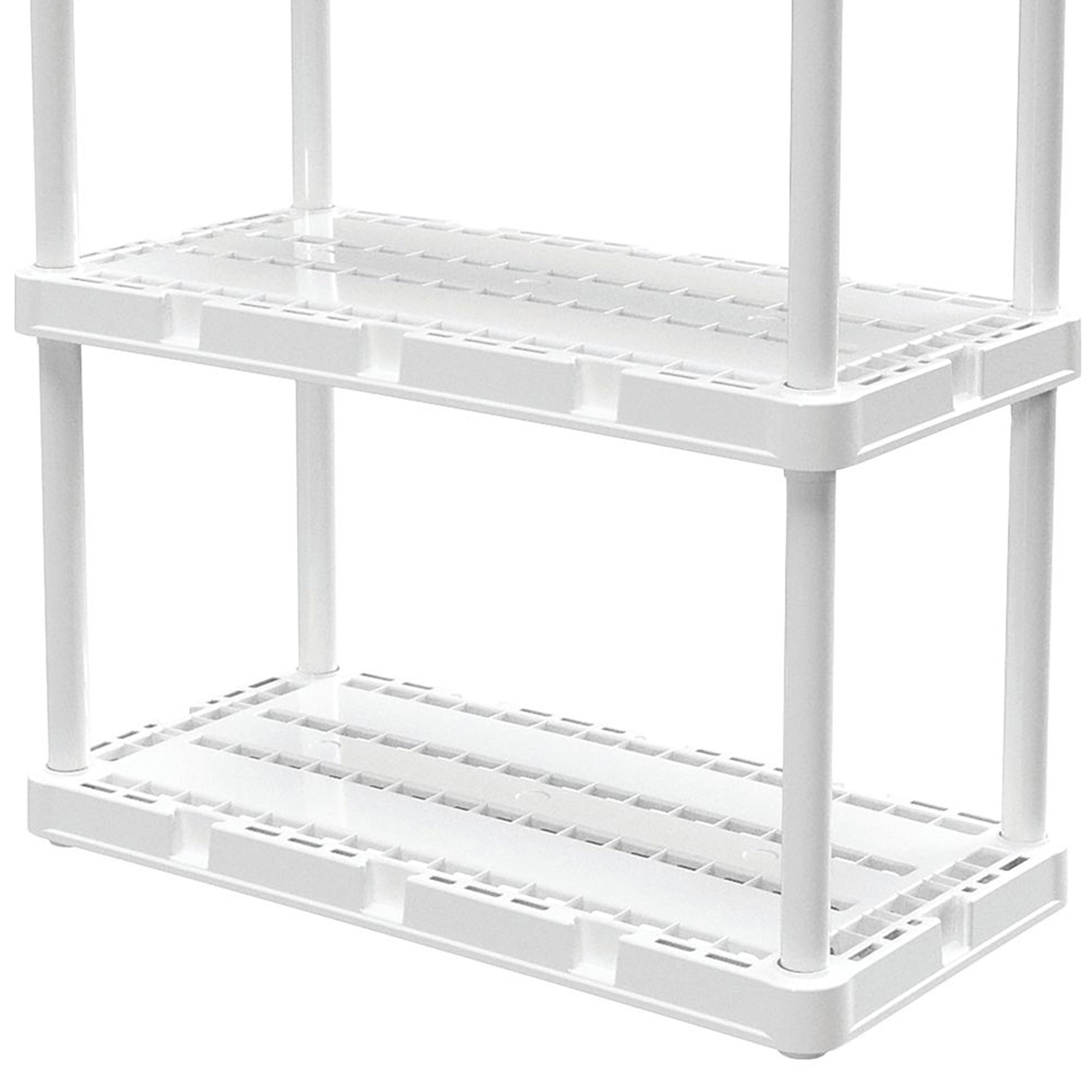 - Store items in your home or garage with the 3-pack of the heavy-duty white 4-shelf storage unit