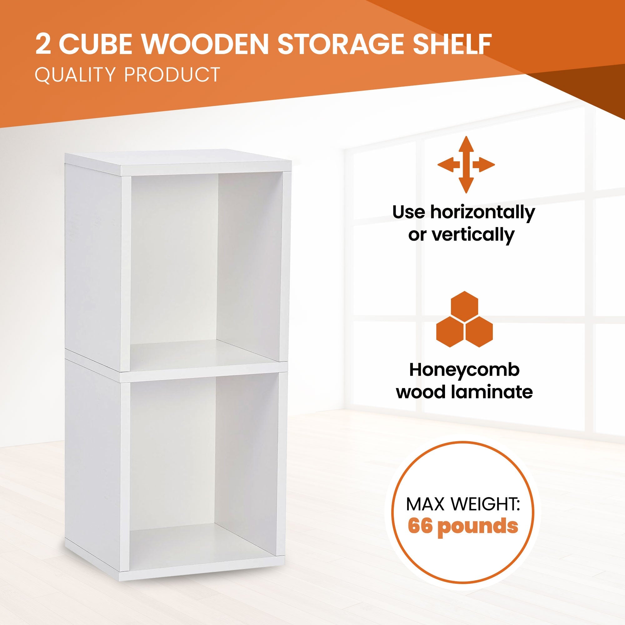 Juggernaut Storage 2 Cube Wooden Storage Shelf Bookshelf Home Organizer, White