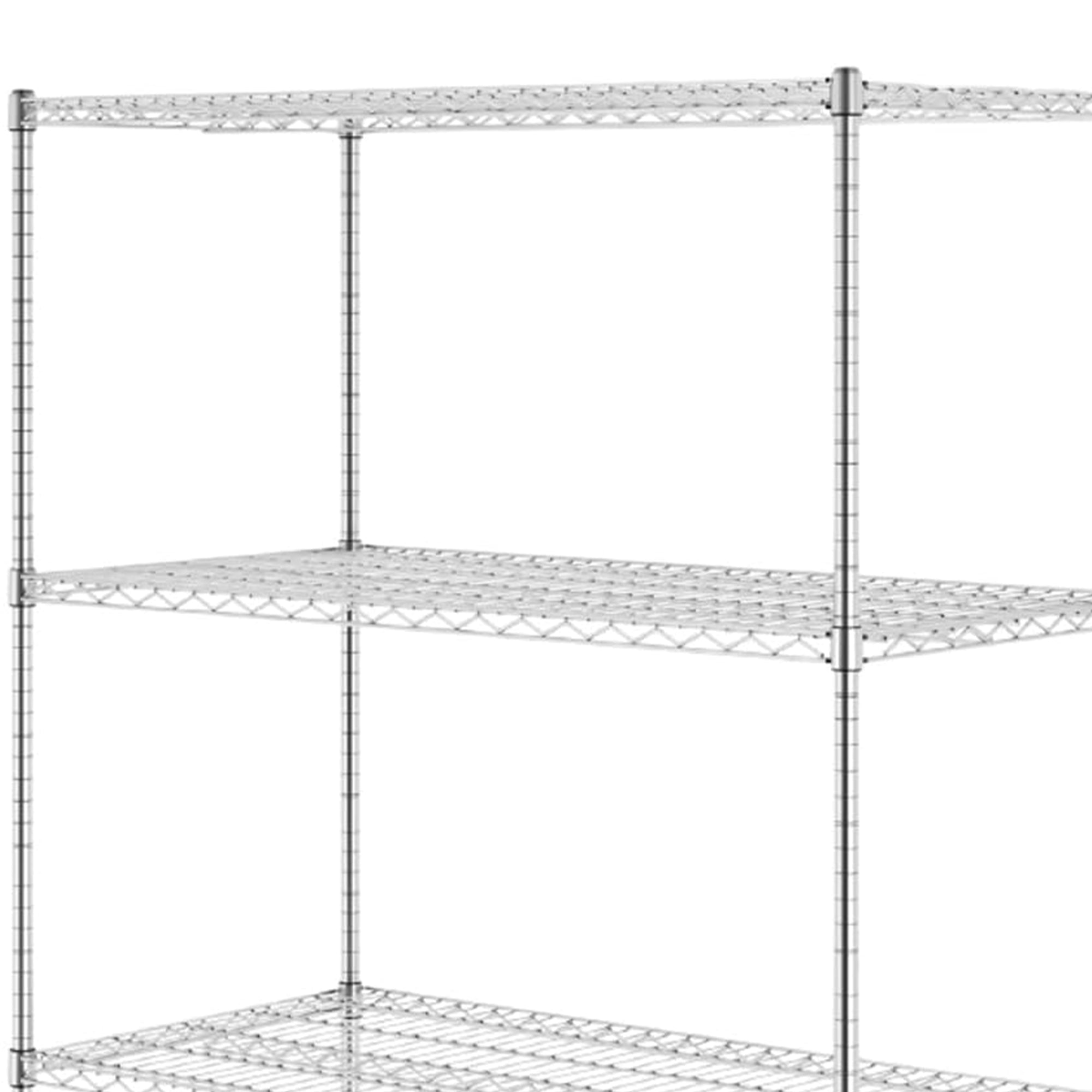 The heavy-duty steel wire shelving unit is built to endure and boasts unparalleled durability and versatility. Each shelf is zinc-plated to resist rust, making it ideal for diverse applications, from pantry storage to document organization, even in moist conditions. Its sturdy construction makes it suitable for demanding commercial settings like restaurant and hotel kitchens, maintaining cleanliness and organization under heavy loads.