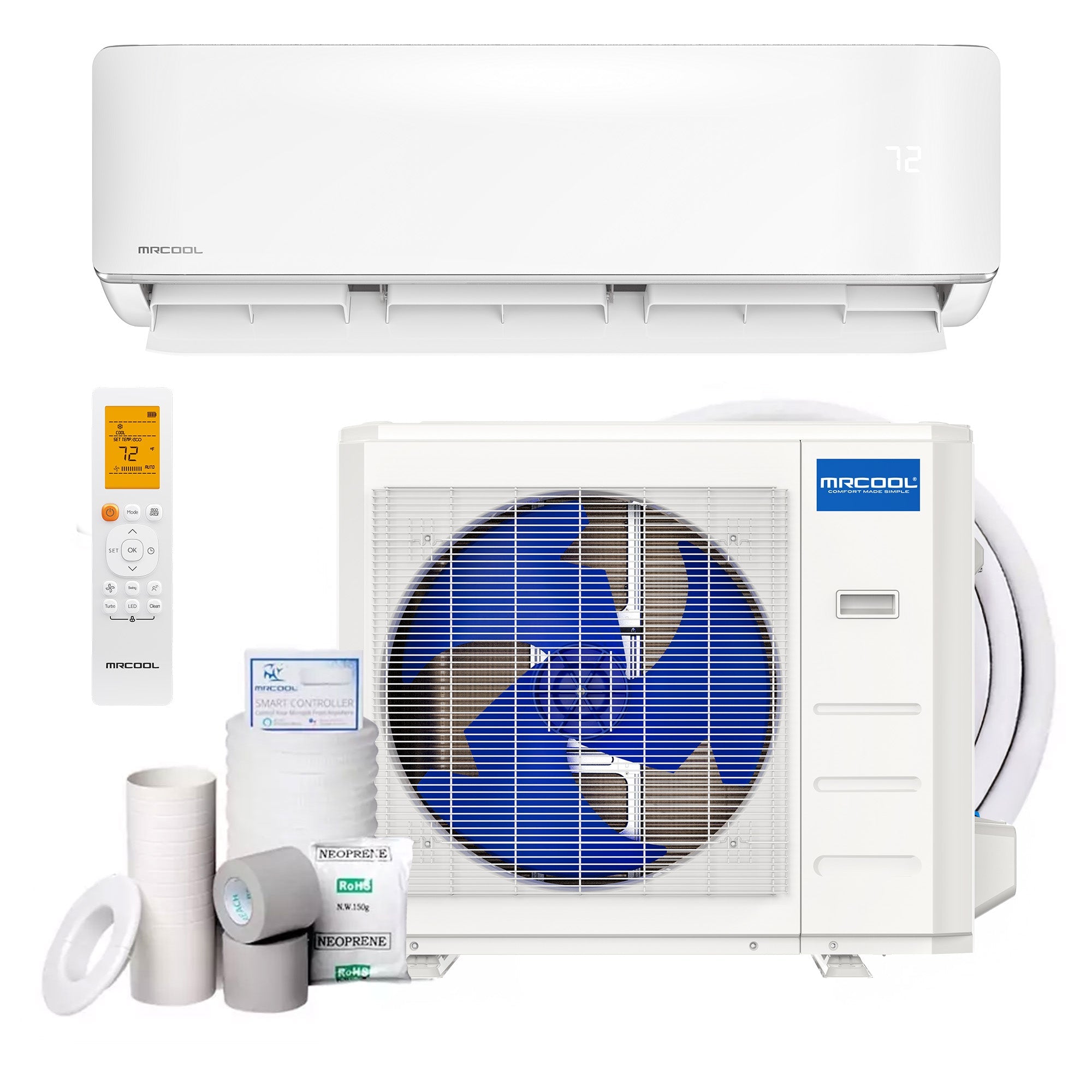 To further enhance your experience, this heat pump is equipped with SmartHVAC technology. This WiFi-enabled feature allows you to have full remote control over the system using a smartphone or virtual assistant app. Adjust the temperature, and fan speed, or switch modes effortlessly, even when you're away from home. Equipped with 24,000 BTU of cooling and heating power, the MRCOOL Advantage Series is capable of efficiently heating or cooling an area up to 750 square feet. The unit comes with a 16-foot lineset and requires a 208-230V electrical connection for operation, making it a reliable and powerful choice for your heating and cooling needs. Please note, installation should be performed by an HVAC Technician.