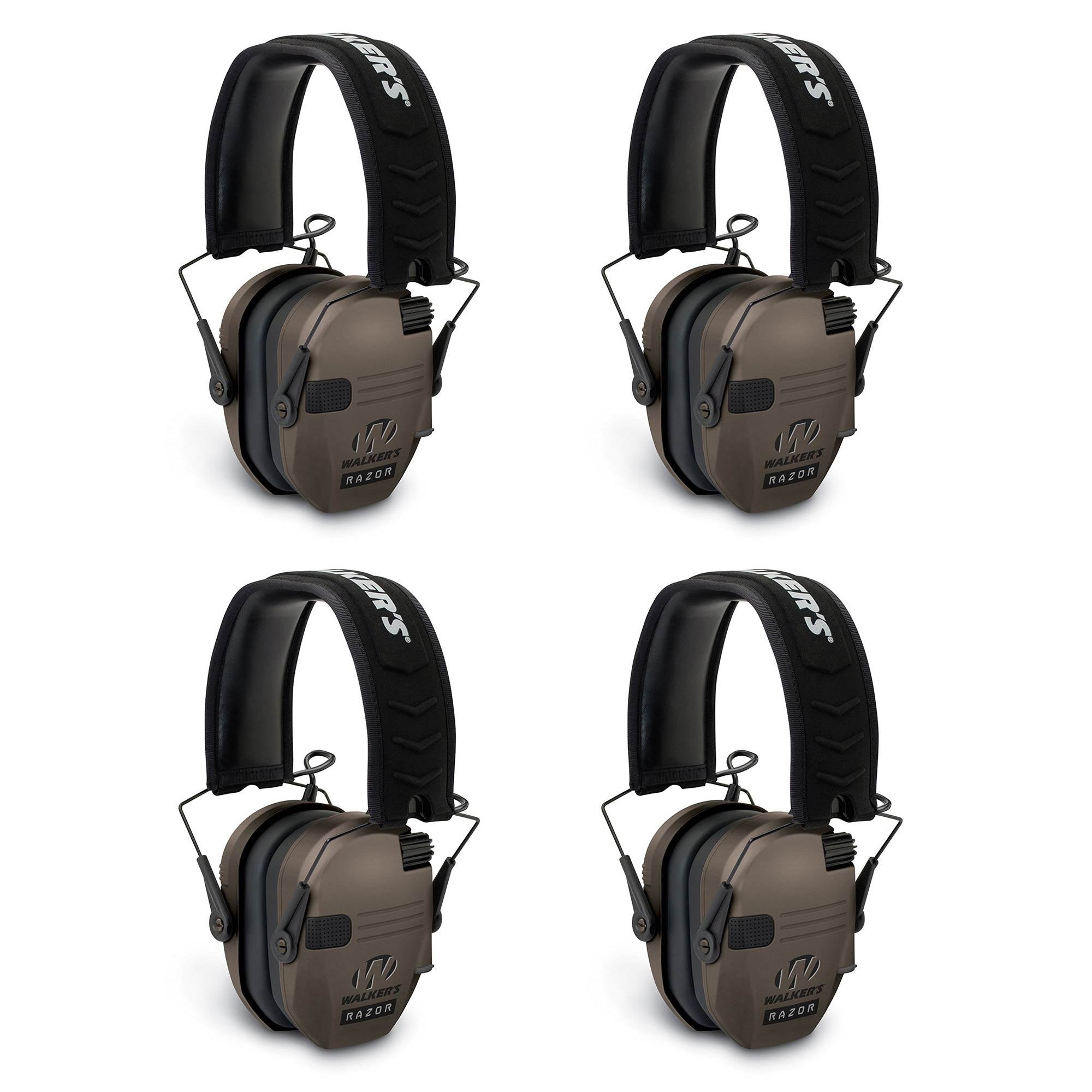 Walkers Razor Ear Protection Dark Earth Slim Shooter Folding Earmuffs, 4 Pack