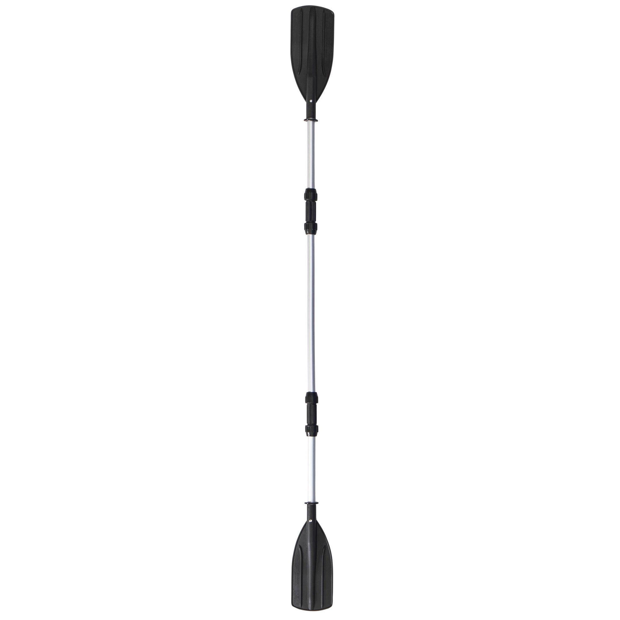 Including double-bladed oars that are aluminum, lightweight, and held flush by secure oar clasps, you can navigate the water with ease, while the removable fins also help with directional stability and increase speeds. The sturdy canvas handles on each side make moving the kayak a breeze. For storage, simply detach the fins from the kayak to get an ultra-compact, space-saving fold.