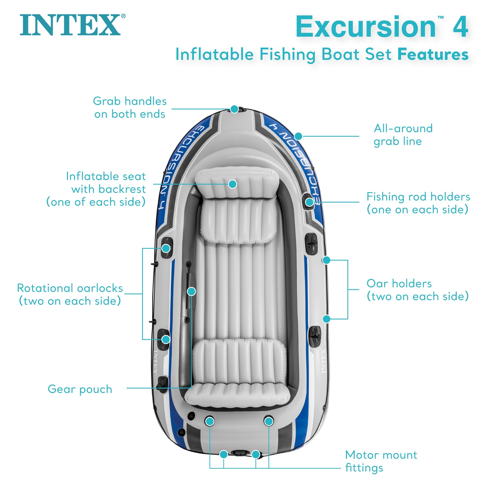 This package will also include the Intex Excursion 4 Boat Set gets you out there exploring and rowing.