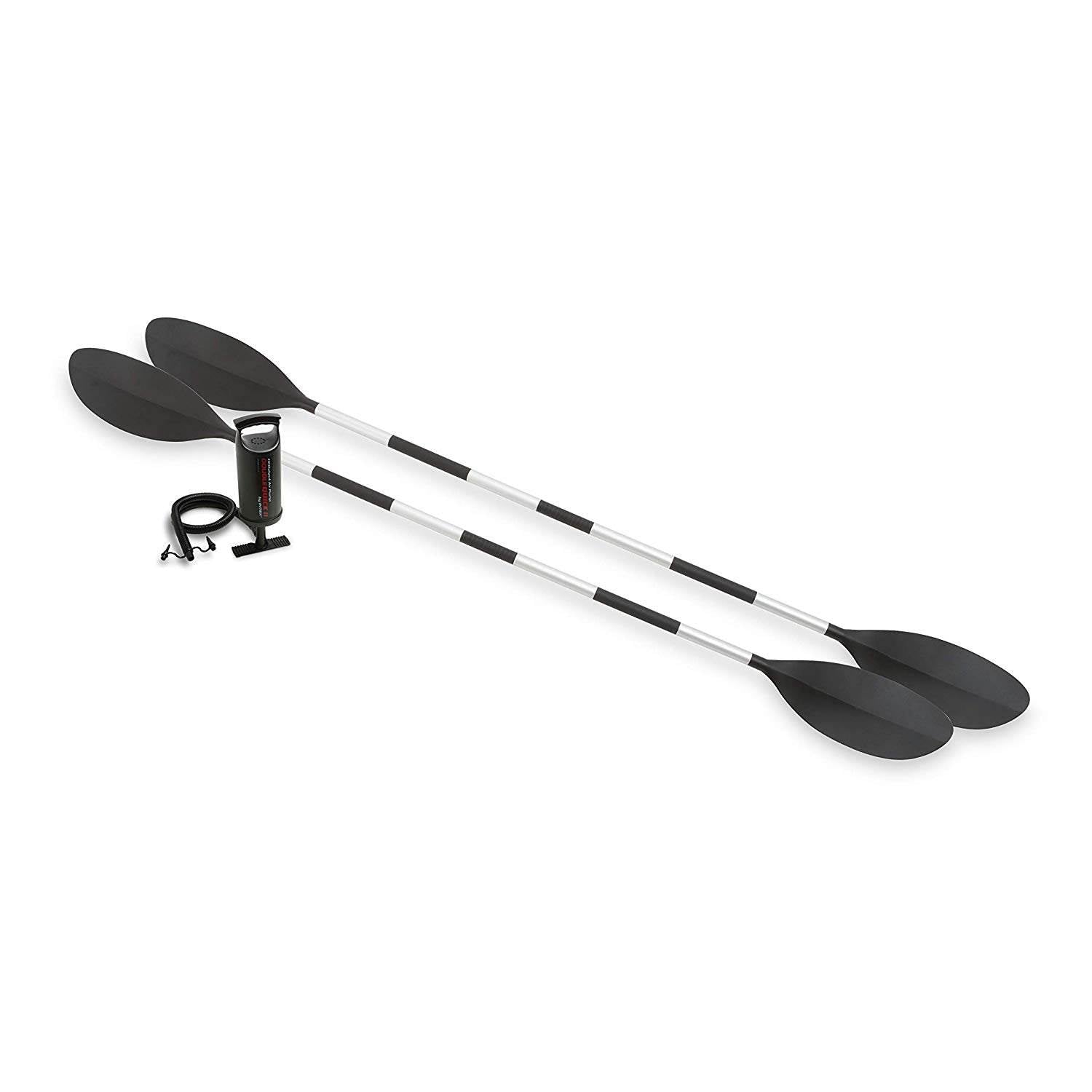 - Includes 2 86-inch aluminum oars and an Intex high output hand pump (68614E)