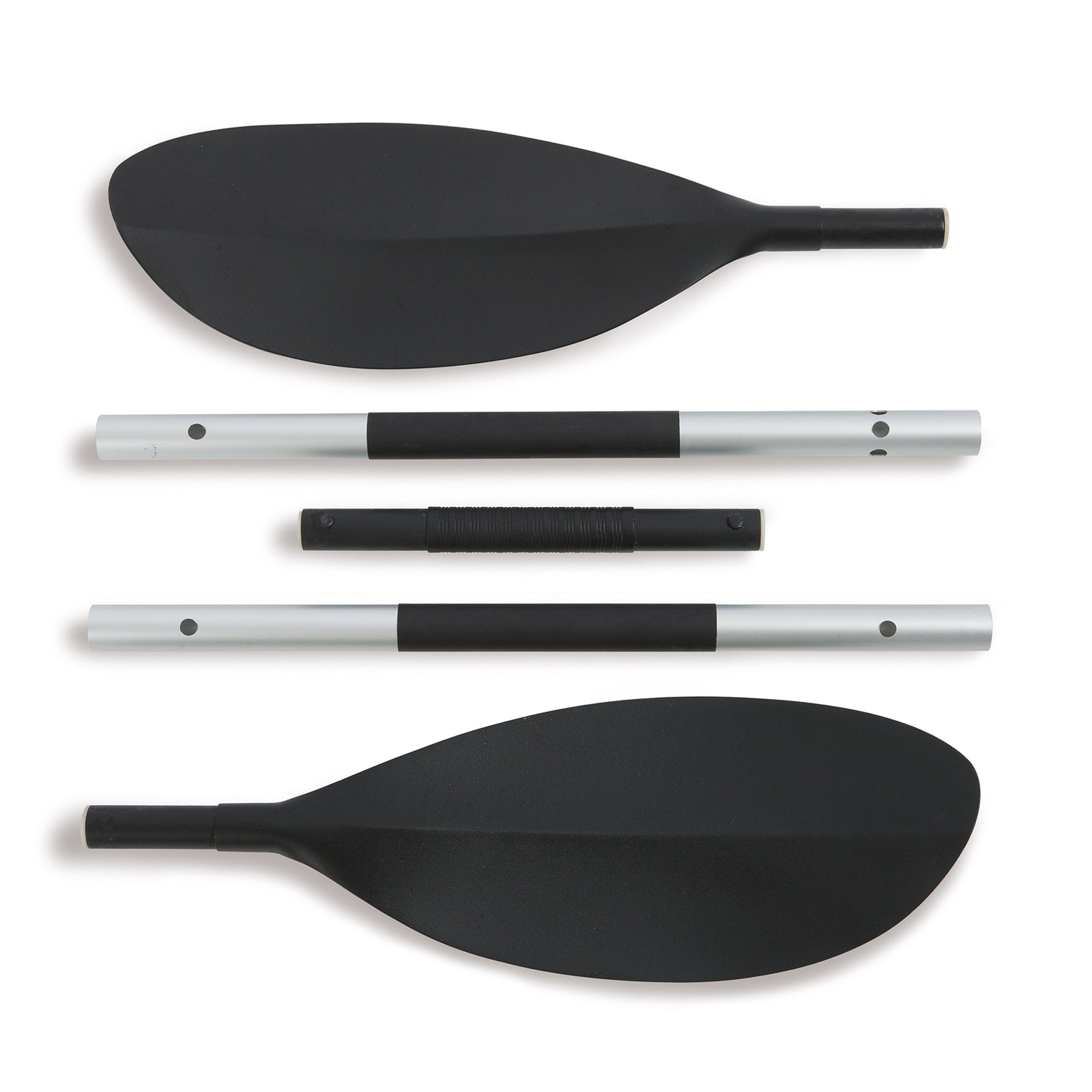 - Comfortable and spacious cockpit with inflatable seats, backrests, and a cargo net to keep personal belongings in the boat; Streamline design for easy paddling and removable skeg for directional stability
