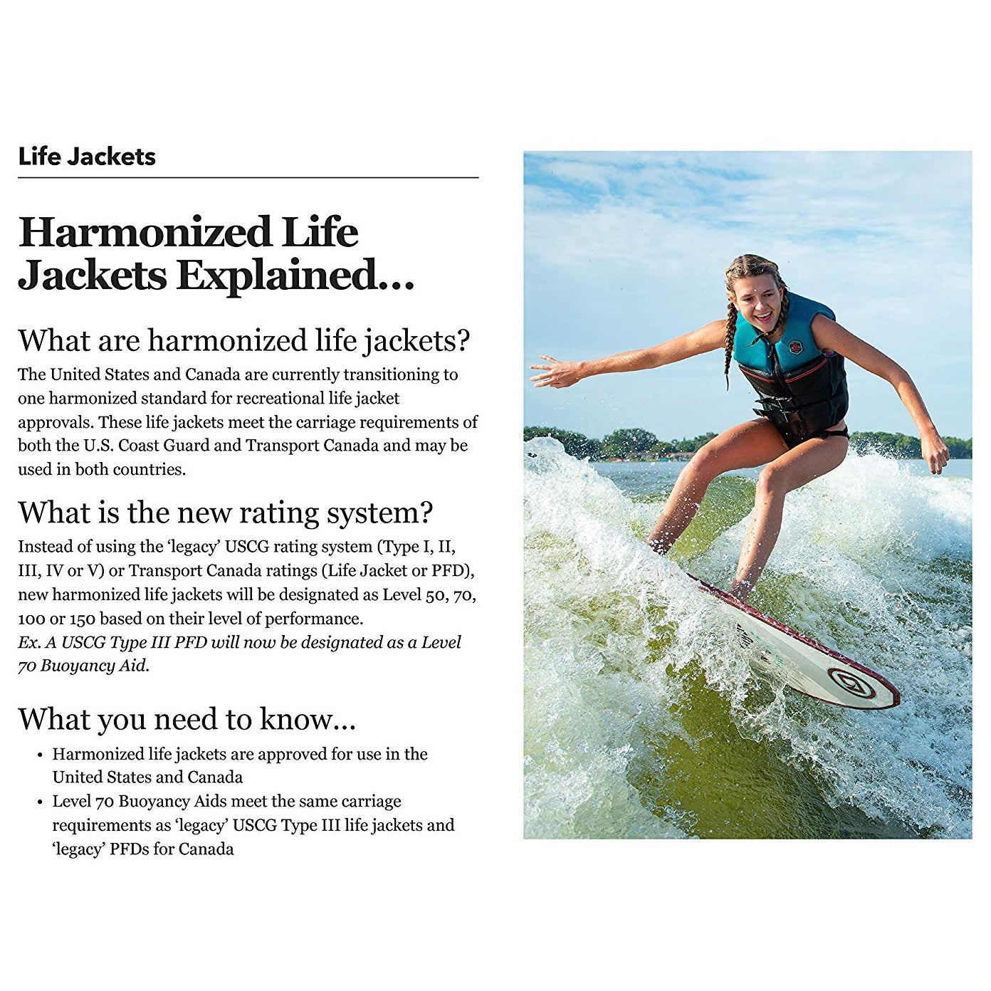 - Level 70 buoyancy; type III US Coast Guard and Transport Canada approved