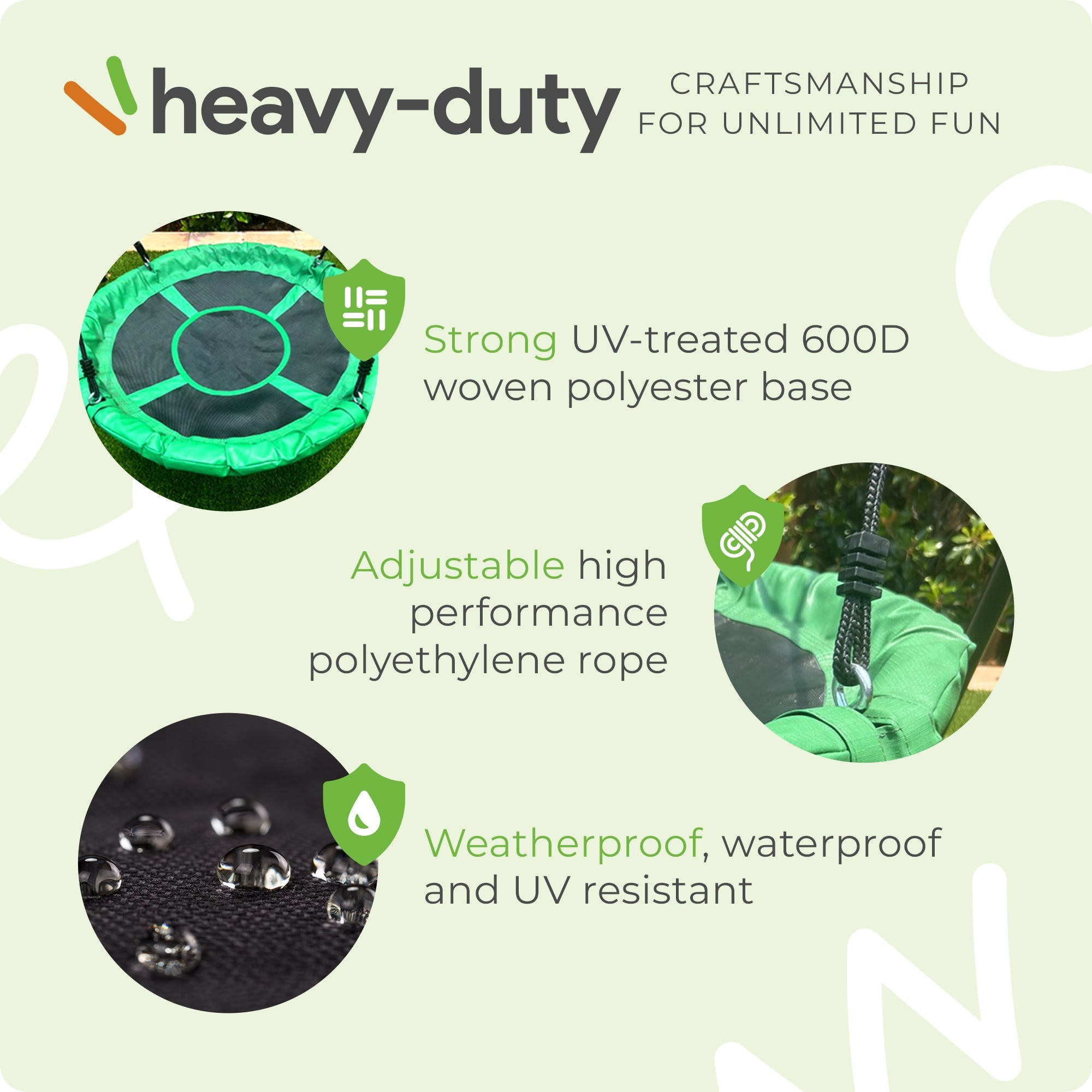 - Engineered with quality materials that resist rust, fraying, and fading; Ready for years of safe and happy swinging in your backyard
