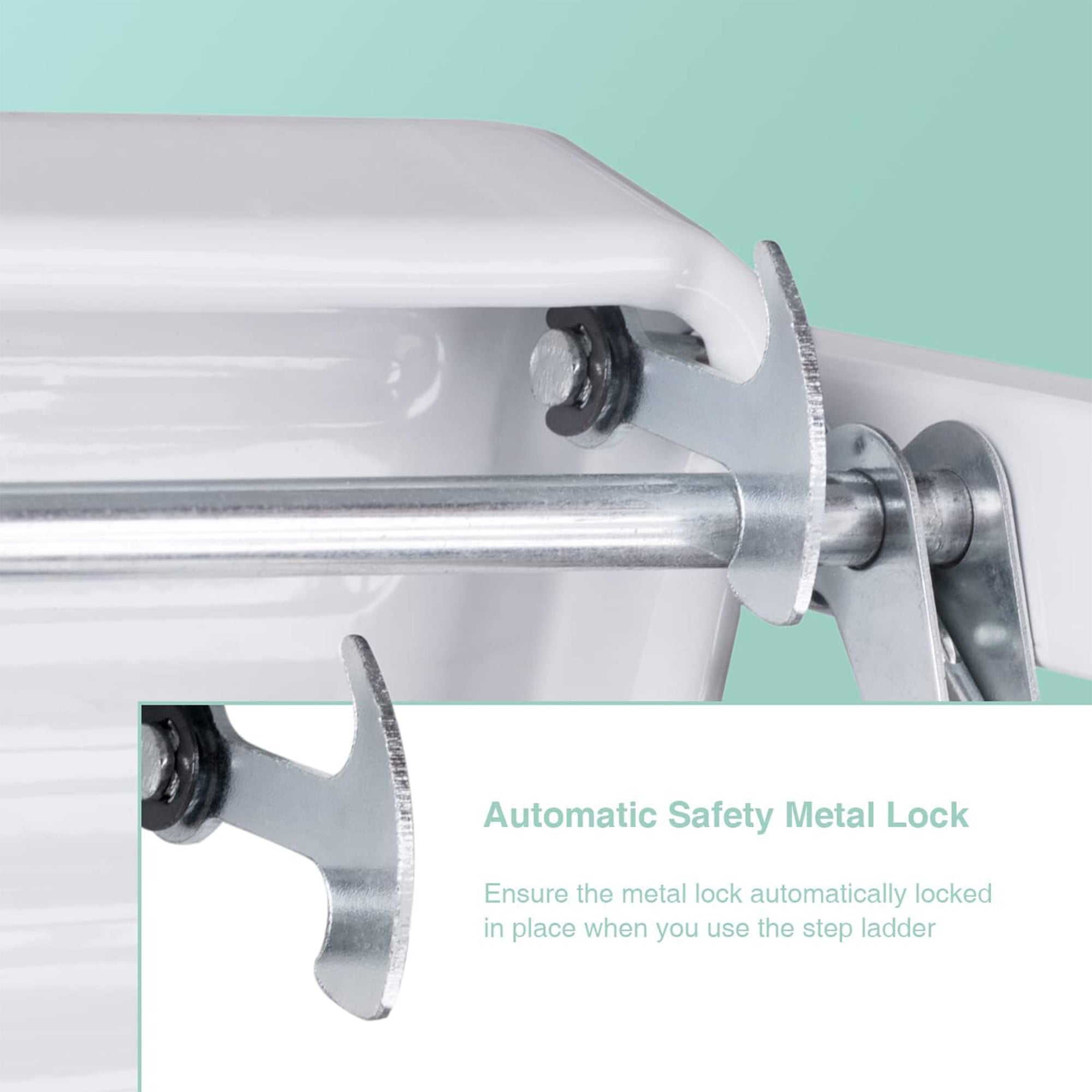 Crafted with high-quality steel, this stepladder can withstand up to 330 pounds, ensuring your safety and stability. The non-skid wide pedestal keeps you secure while offering superior heel-to-toe foot support, eliminating foot pain and allowing maximum stability. Also, the durable, non-marring legs protect your floors. And that's not all, the automatic safety metal locking mechanism ensures the ladder remains locked in place while you are on it.
