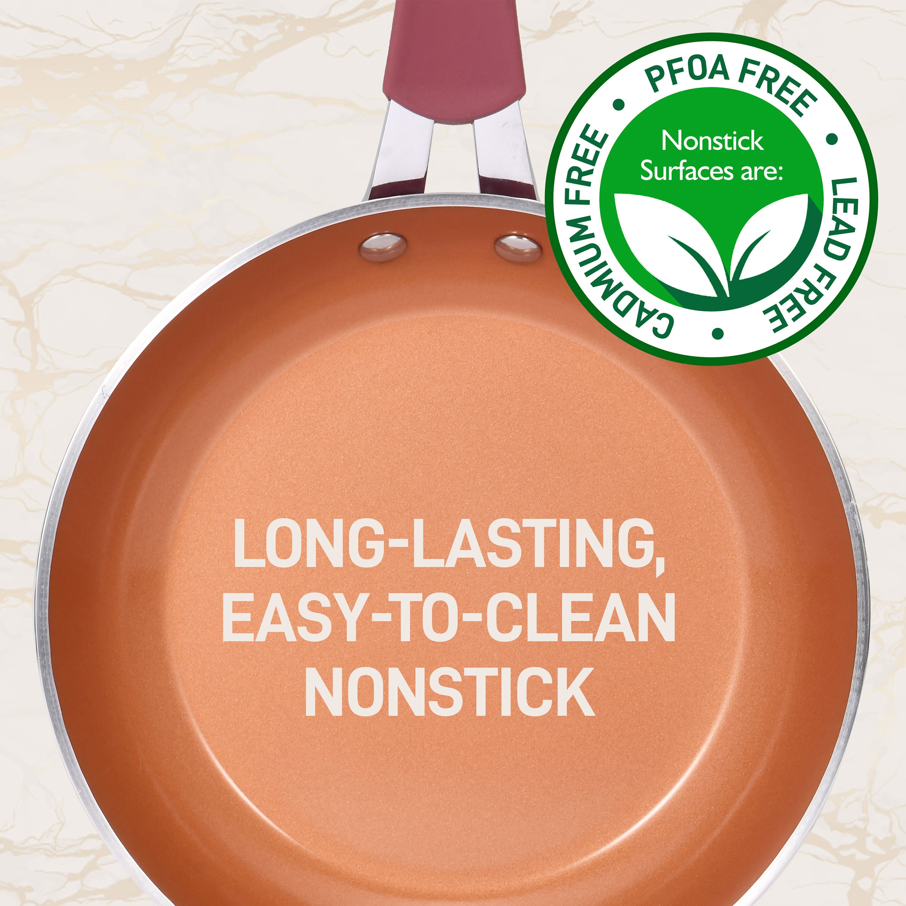With cool-touch and form-fitting handle grips, you can handle the pots and pans comfortably. The cookware set effectively distributes and retains heat so your food will be evenly cooked all around. The see-through tempered glass lids are great for keeping an eye on your food and the vent holes allow steam to escape.