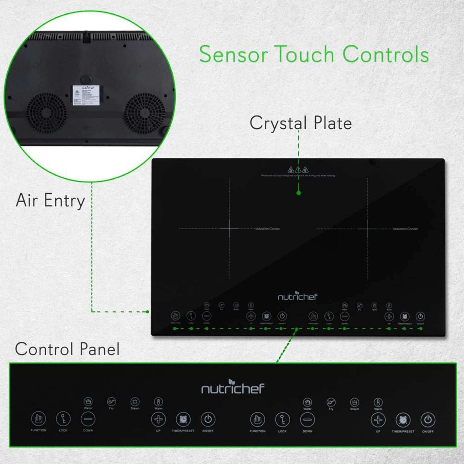 NutriChef 1800W Dual Induction Digital Temp Double Burner Countertop Cooktop