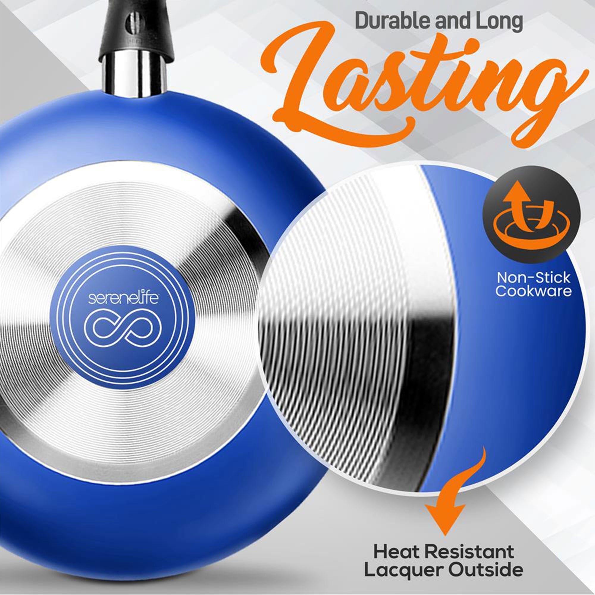 SereneLife 11 Piece Pots and Pans Non Stick Chef Kitchenware Cookware Set, Blue