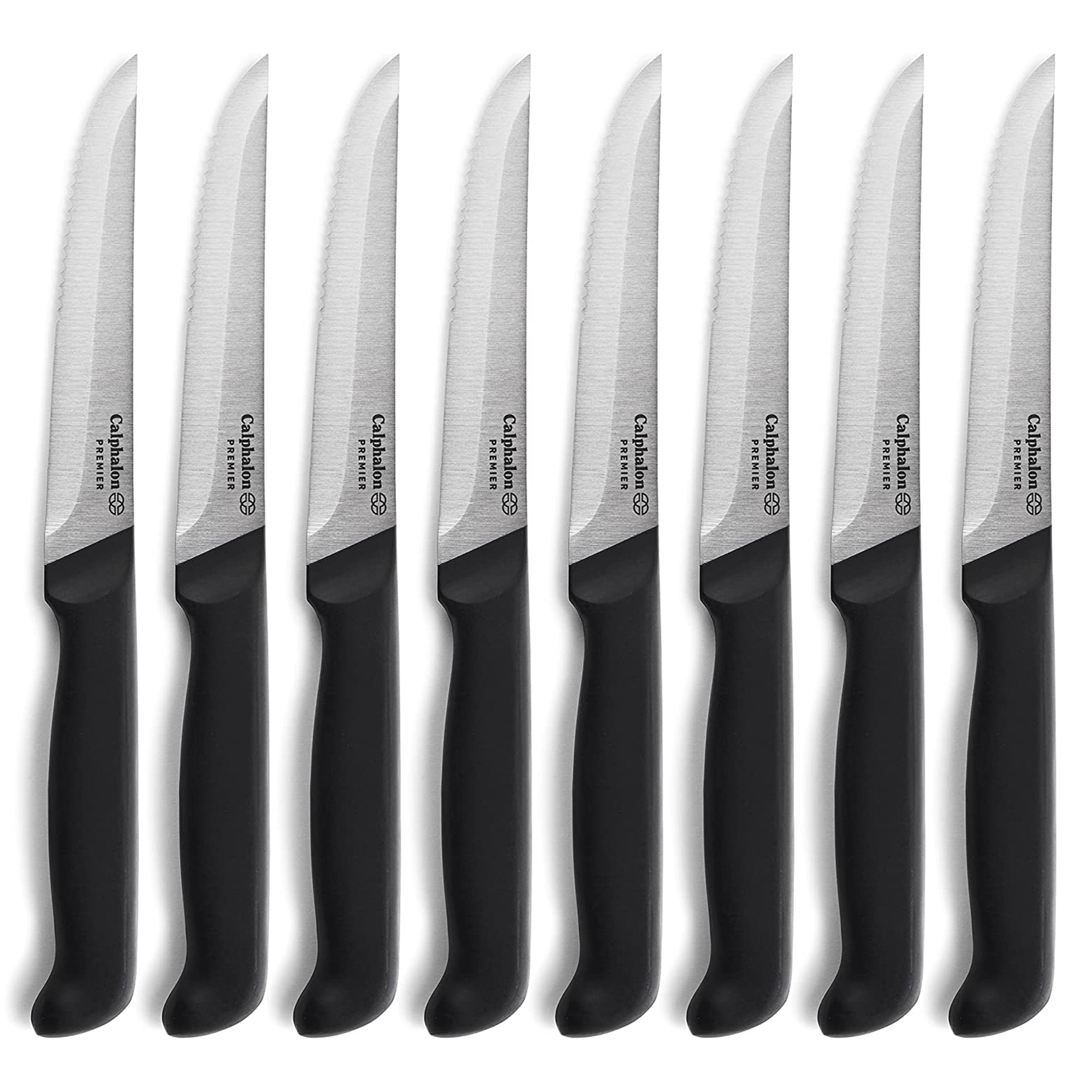 Elevate your slicing prowess, indulge in the satisfaction of excellent cuts, and savor the flavors of your culinary creations with the Calphalon Premier Cutlery SharpIN 8-Piece Steak Knife Set.