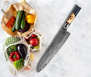 Kerie VG10 Damascus Petty Knife with Carbon Fiber Handle