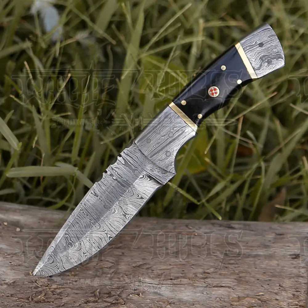 8.5” Hand Forged Damascus Steel Full Tang Skinner Knife - Buffalo Horn Handle - H 020