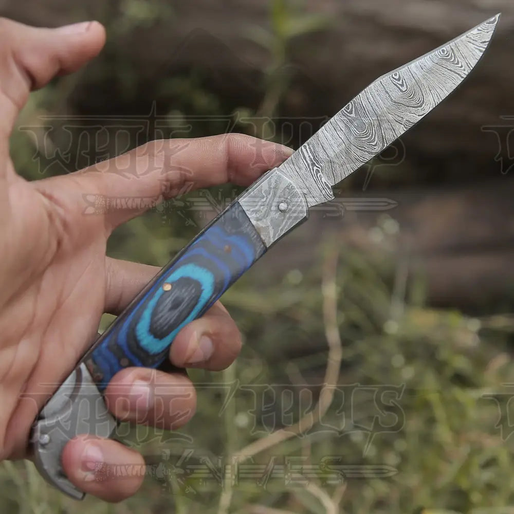 Back Lock 9" Handmade Damascus Steel Pocket Knife Pakka Wood Handle Folding Knife WH 5010