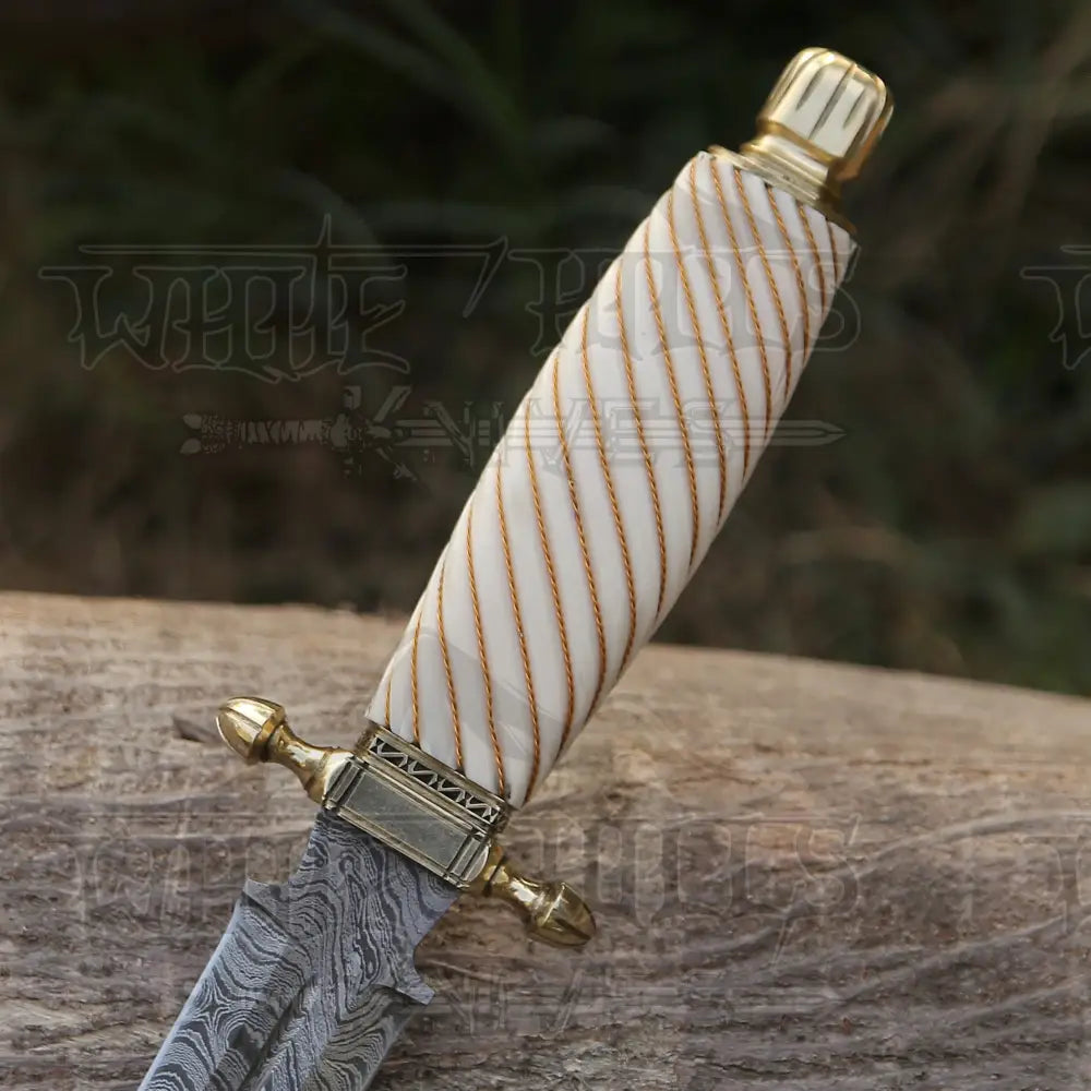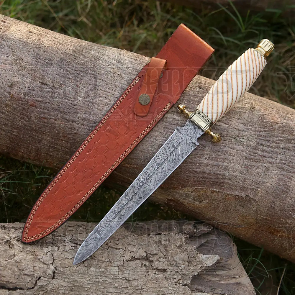 Custom Handmade Damascus Steel Blade, Camel Bone Round-Scale Handle Hunting Exotic Spear Dagger