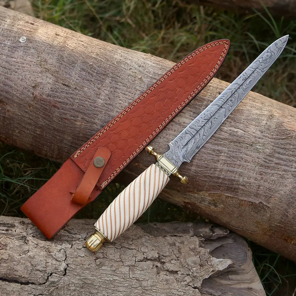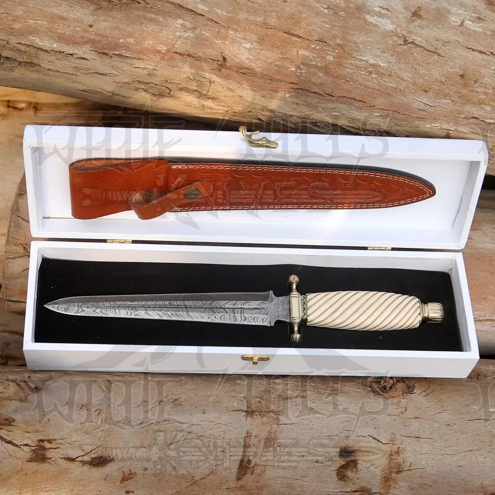 HANDMADE DAMASCUS STEEL DAGGER KNIFE - 15" Camel Bone Handle Exotic Damascus Dagger