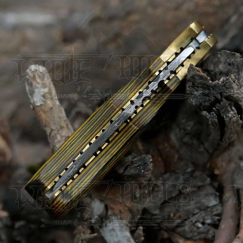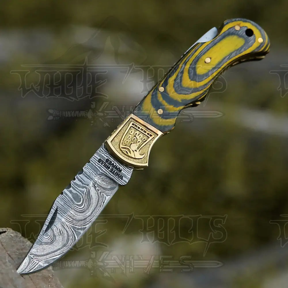 HANDMADE DAMASCUS STEEL POCKET KNIFE - Folding Knife- Stain Wood Handle With Engraved Brass Eagle Bolster WH 5047