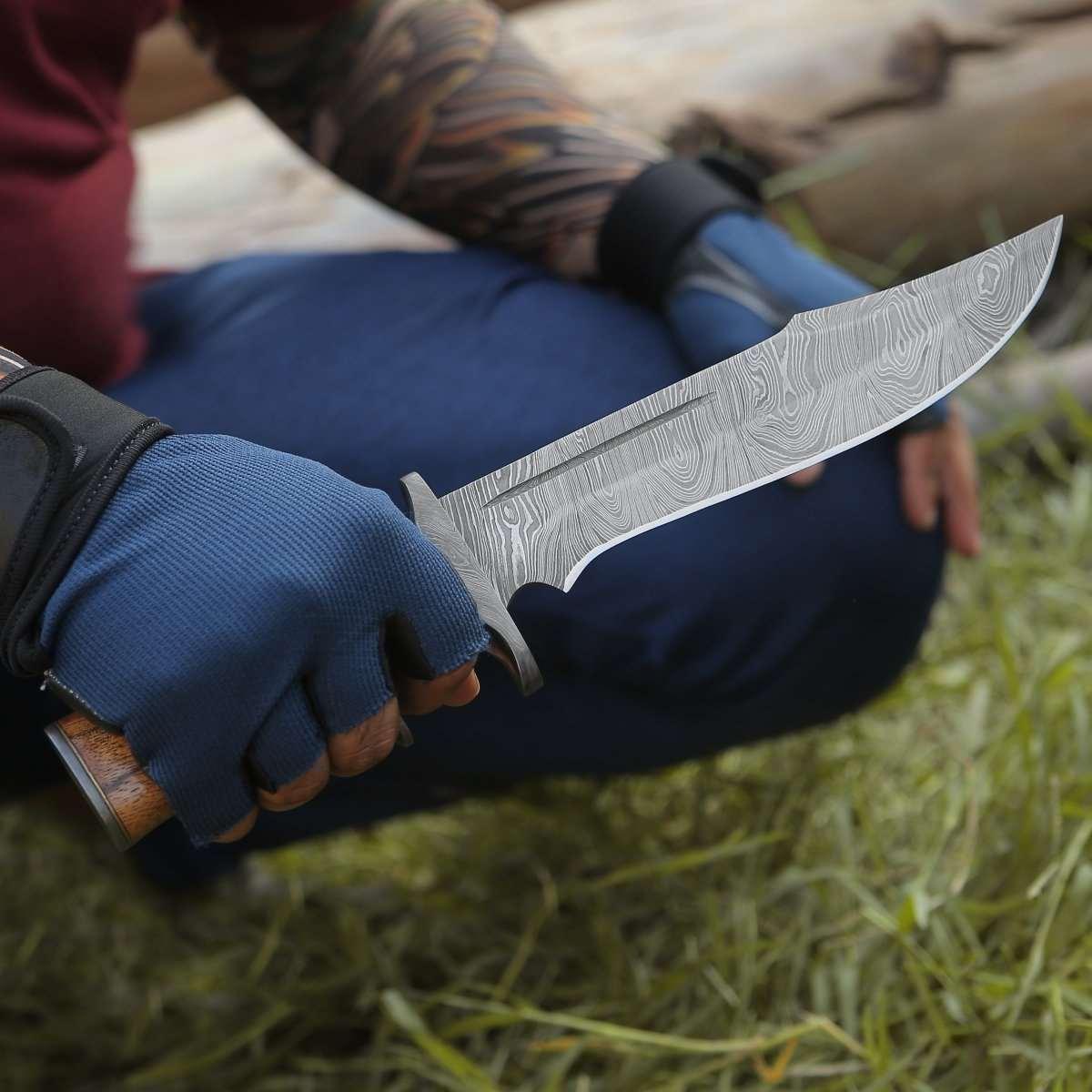 Innovator Damascus Bowie Knife with Rosewood Handle
