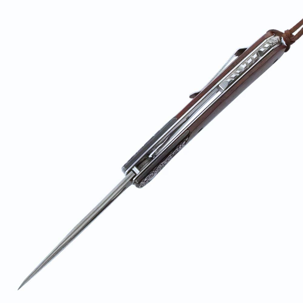 The elegant handle is made using real exotic sandal wood scales. It has been sealed to prevent cracking or drying and preserve the handle for lifetime comes with Under lock ball bearing folding mechanism.