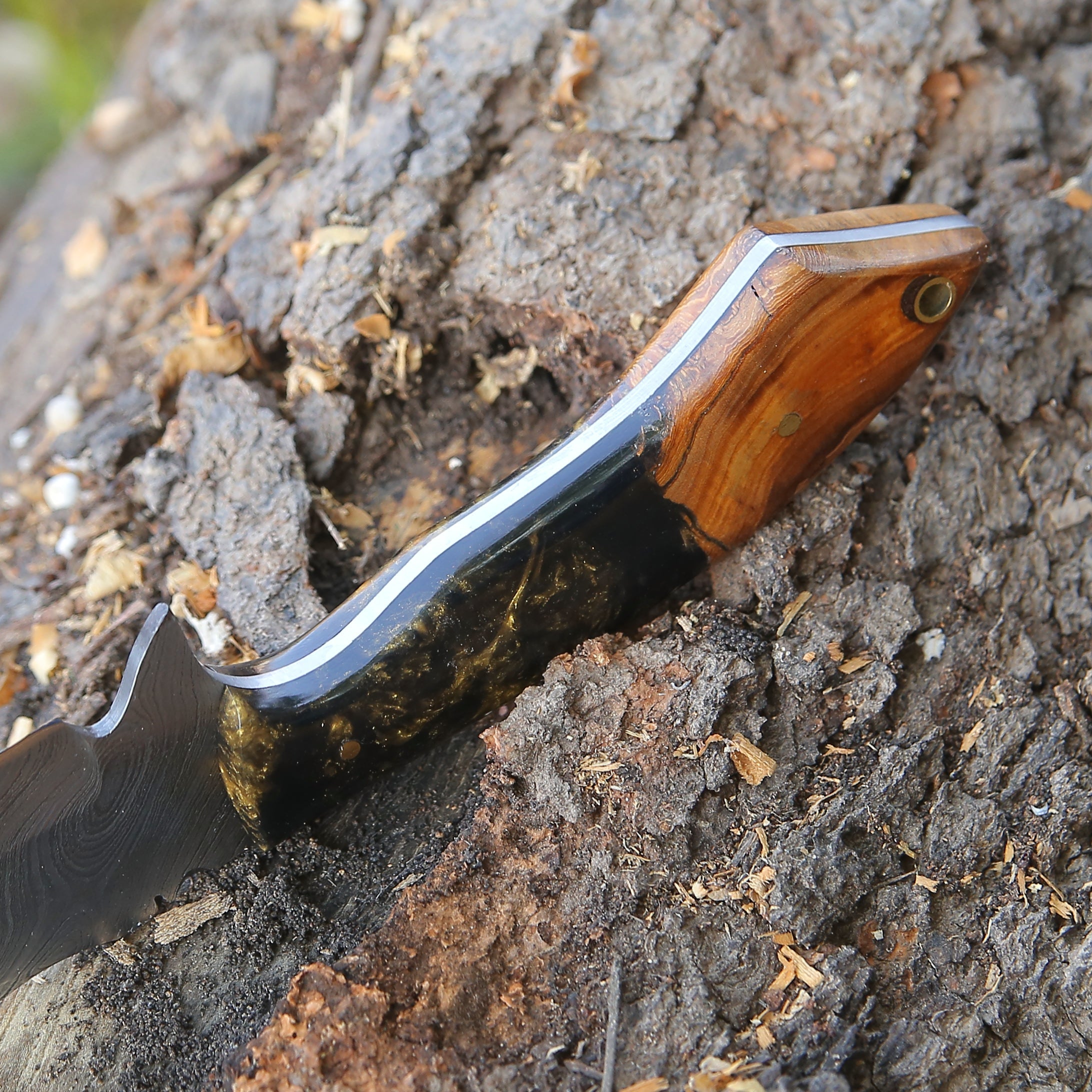 The blade is carefully made by, combining 1095 & 15n20 Steel through layering, welding, and hammering. This process makes each blade have its own special design, like a fingerprint. Each knife is a unique work of art.