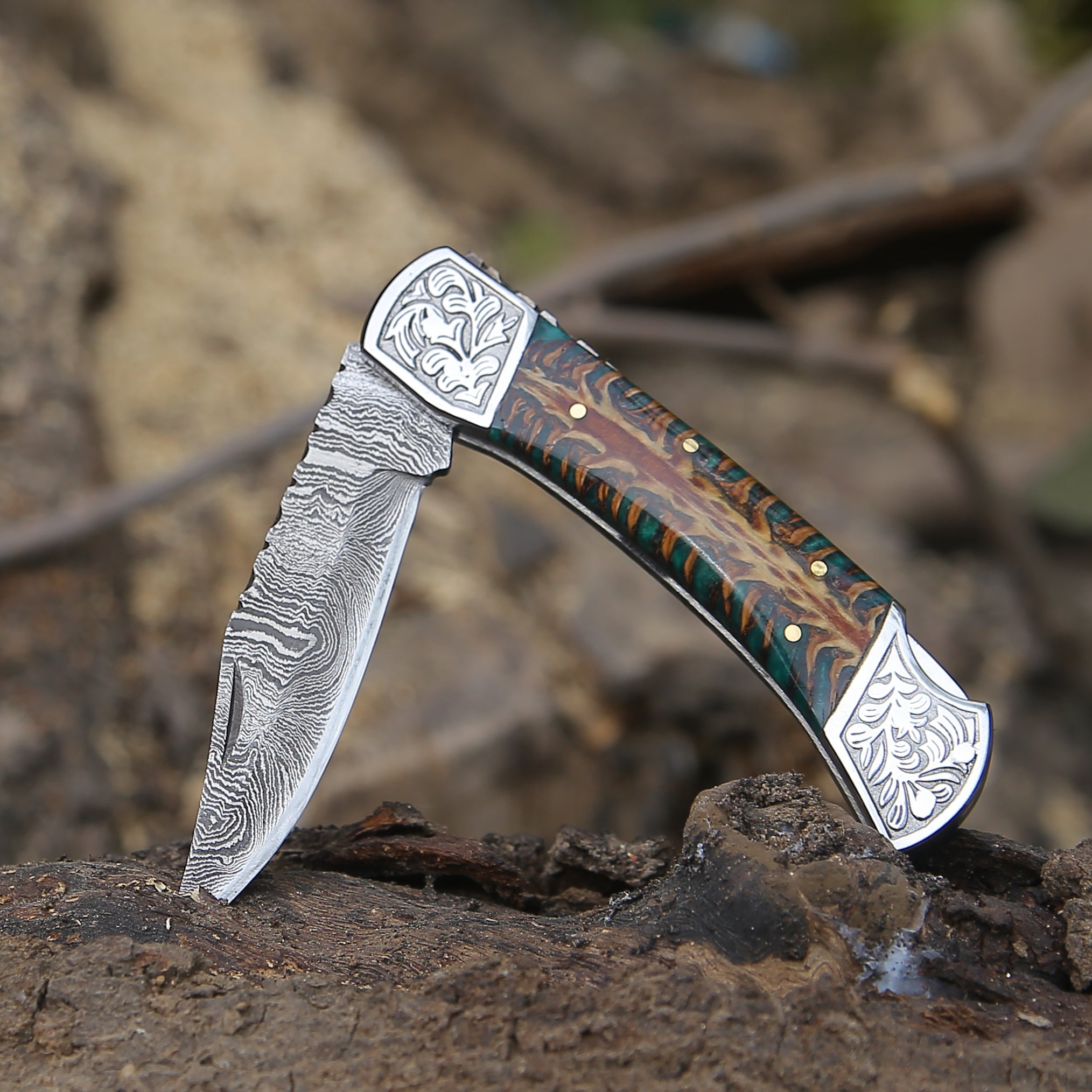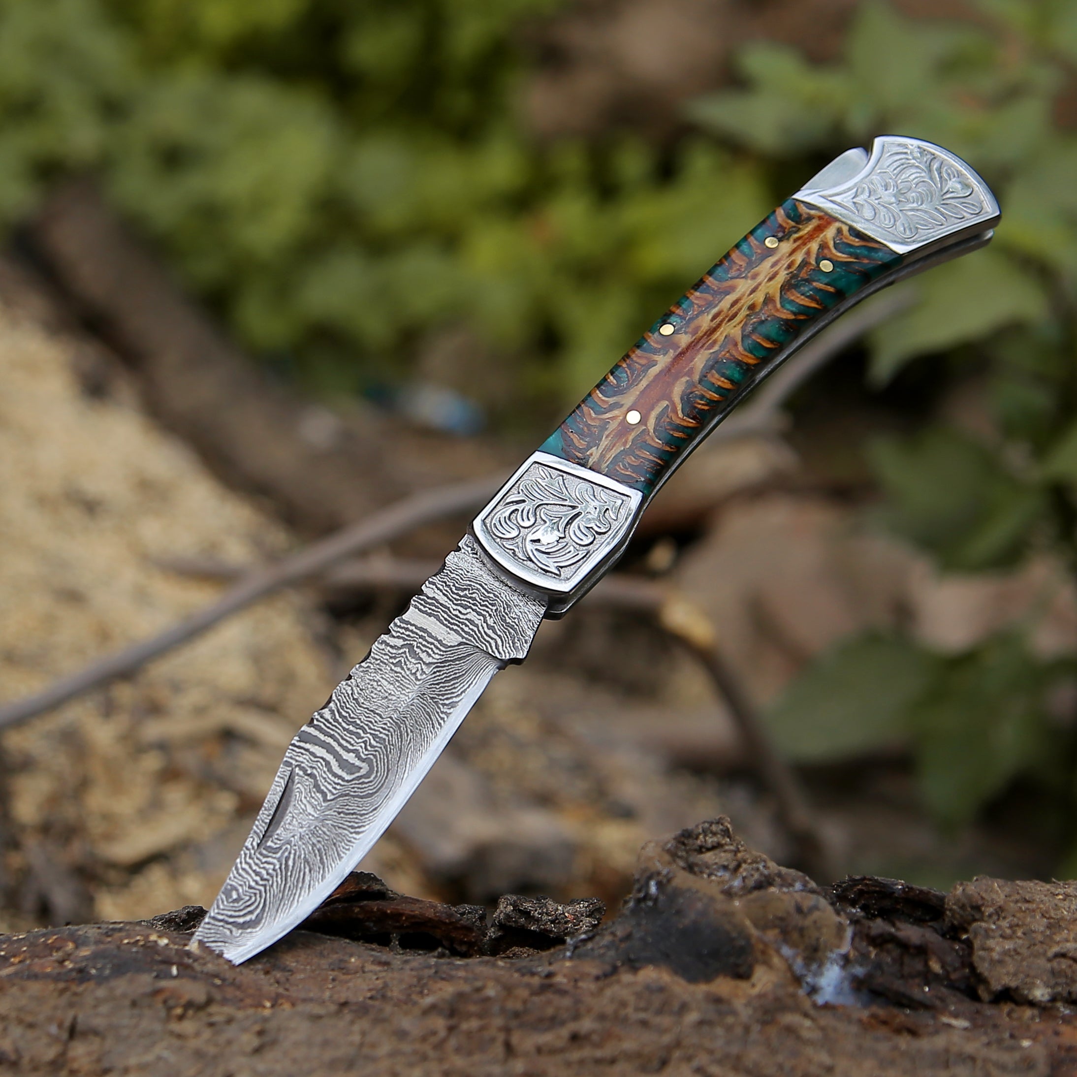 The elegant handle is made using pinecone resin scales. It has been sealed to prevent cracking or drying and preserve the handle for lifetime comes with back lock folding mechanism.