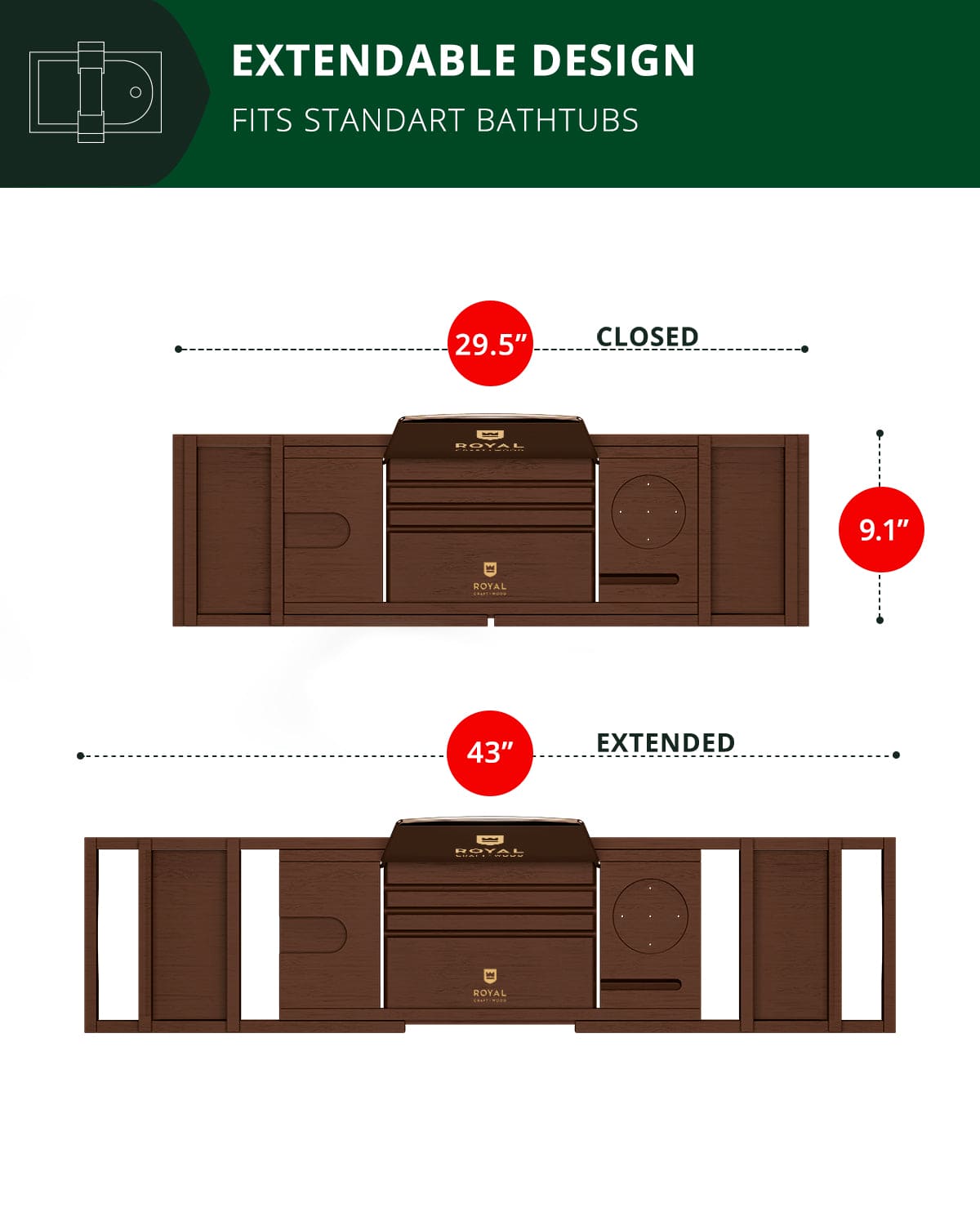 Bathtub Caddy Tray, Brown