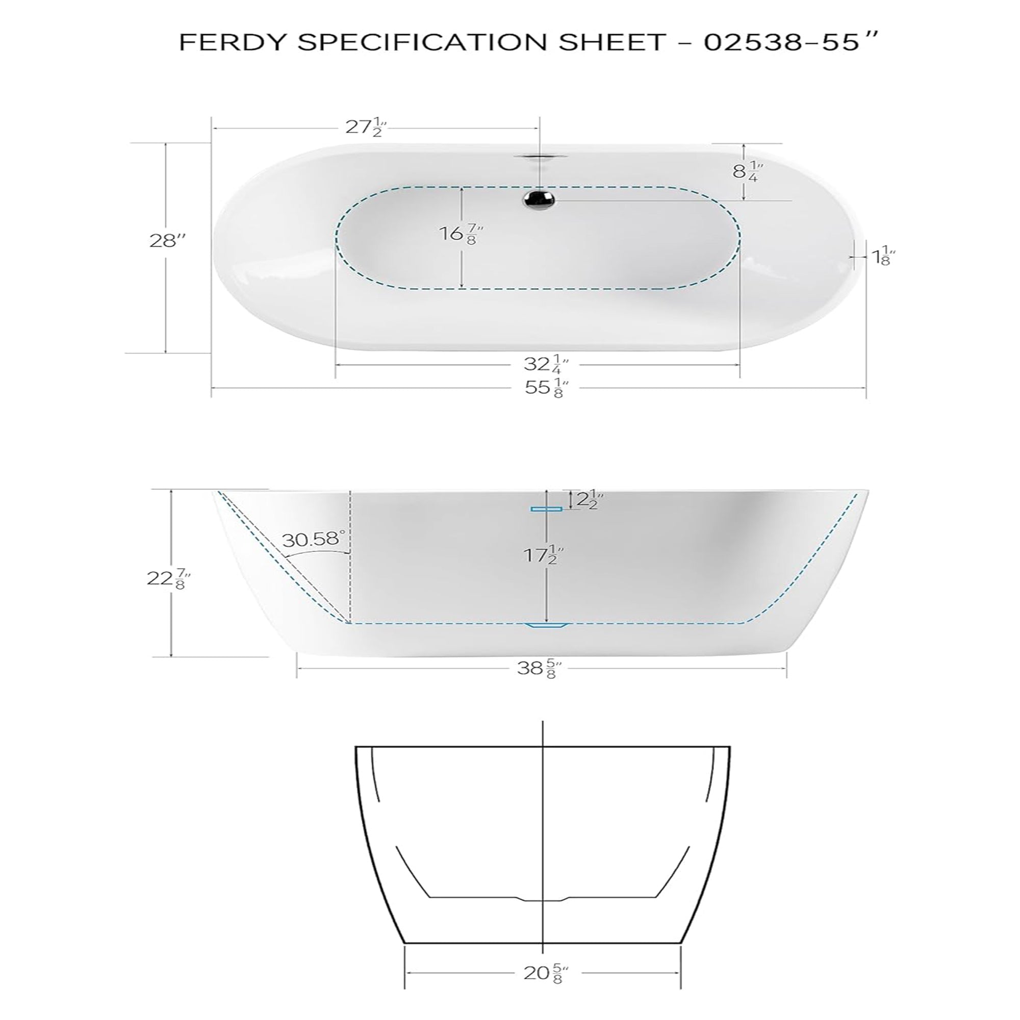 Experience the epitome of bathing in luxury with the FerdY Bali 55-Inch Glossy Acrylic Freestanding Bathtub with Chrome Drain. Immerse yourself in elegance and comfort as you indulge in a deep, restorative soak within the gracefully sculpted curves of this exquisite tub.