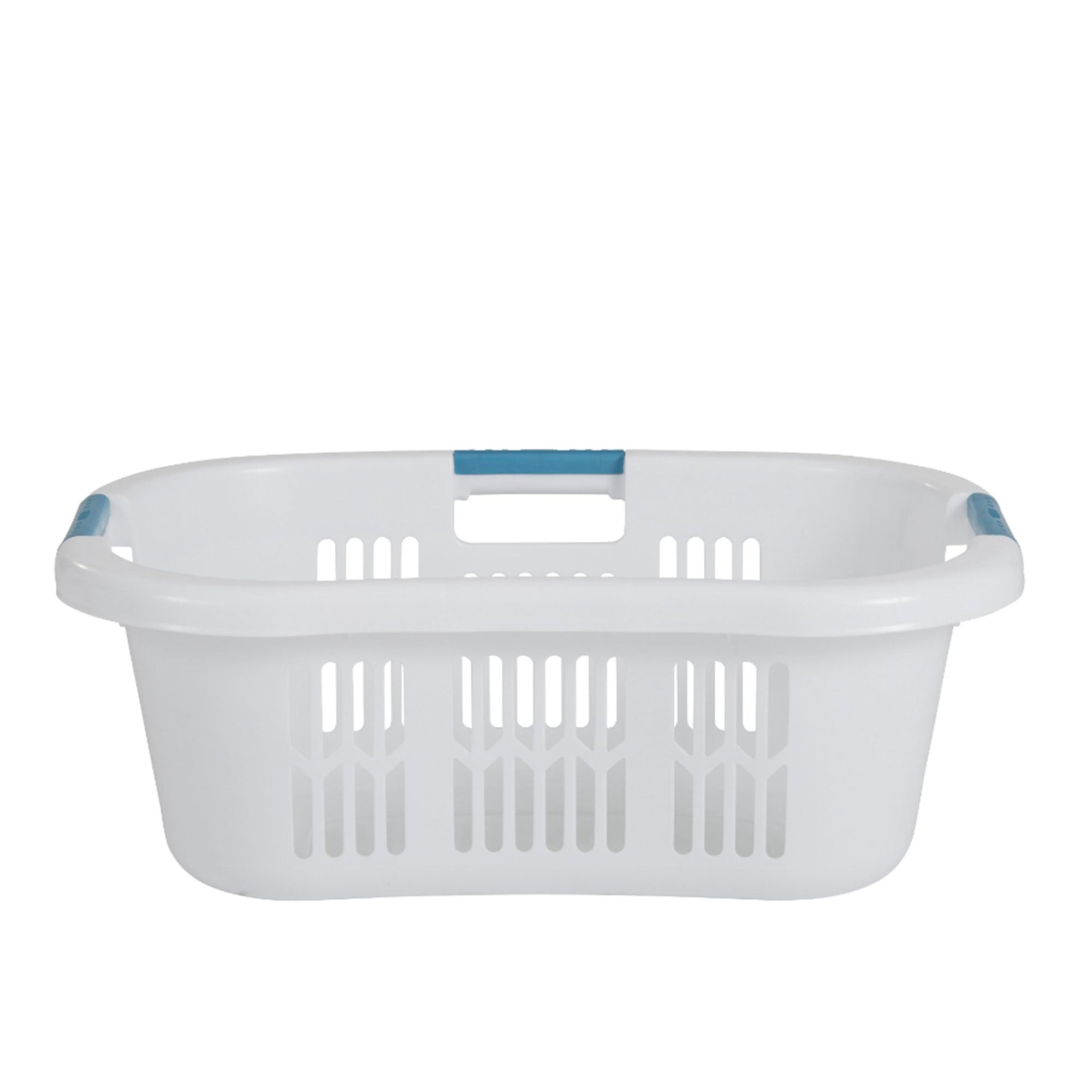 With 2.1 bushels of space, this portable laundry basket is designed to make carrying the basket much easier. This basket has a unique, curved design that rests comfortably on your help. That means when you're transporting your clothes to/from the laundry room, you can do so easily with one hand. It's made from durable plastic material and is equipped with 3 grab-through handles to help ensure a great grip on the basket. Overall, this is a helpful and more convenient way to store or carry your clothes around your home.