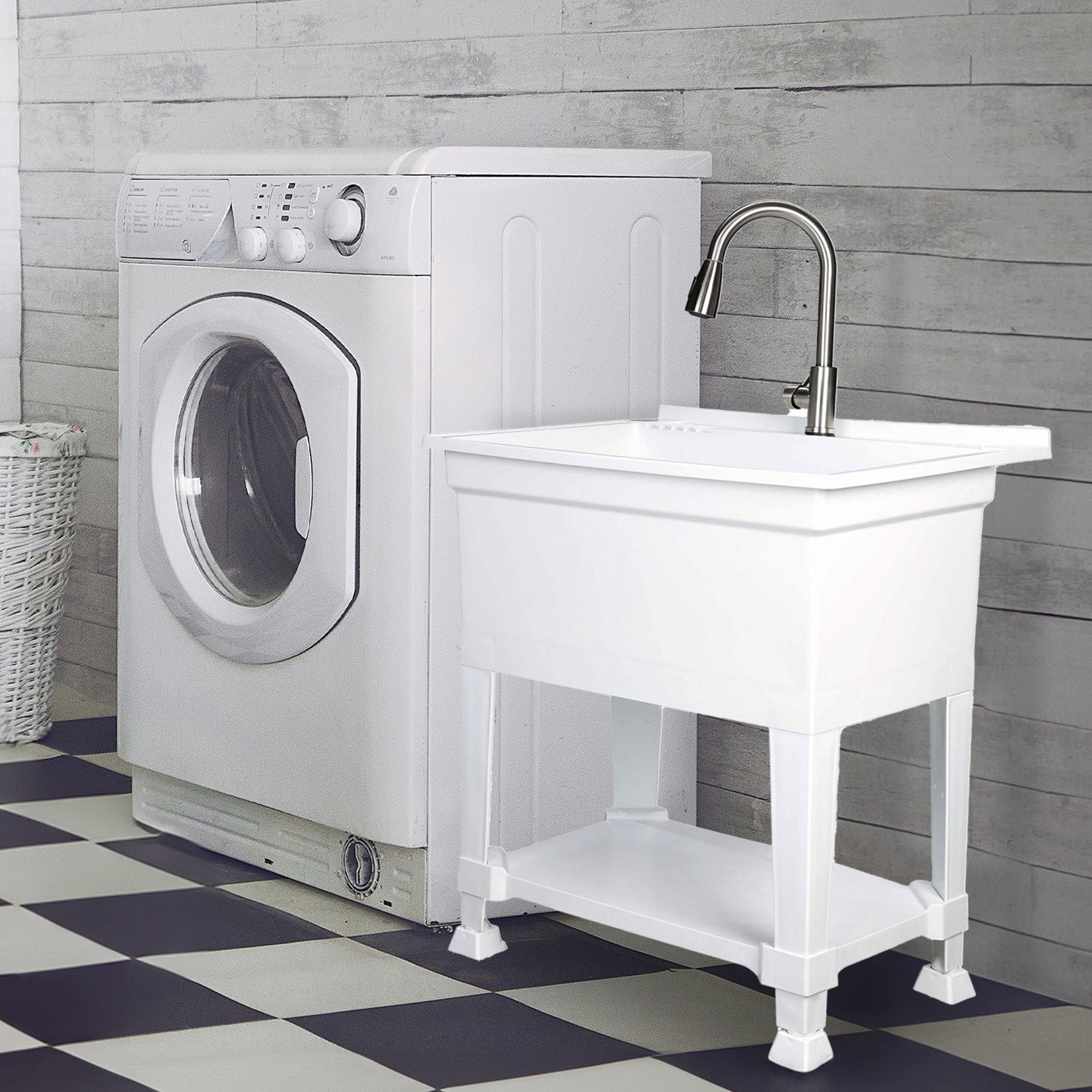 - Freestanding utility sink for workshops, laundry rooms, garages, restaurants, basements, greenhouses, and even pet wash stations