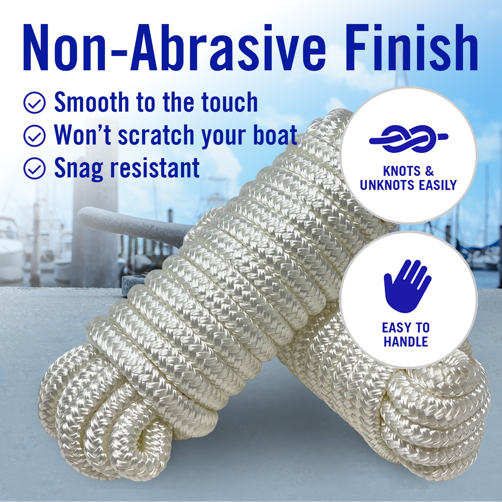 - Marine-Grade Double Braided Nylon: Ultra-durable, premium-quality nylon rope that is sun, salt & water-resistant to last for seasons.