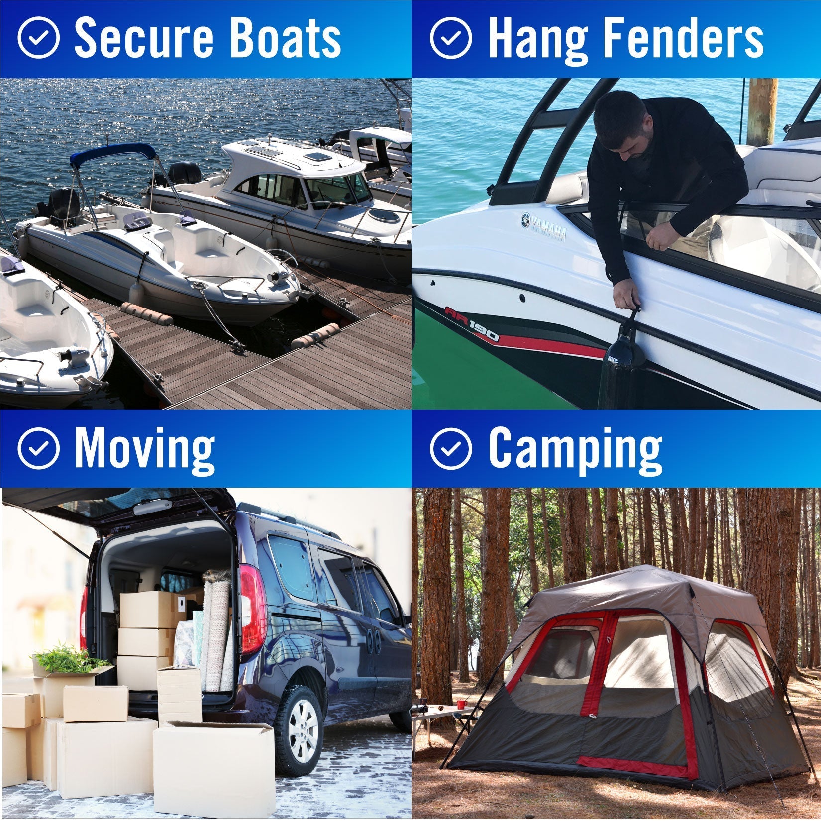 - Not Just For Boats: Works great for camping, tying up trees, lashing down furniture when moving & more!