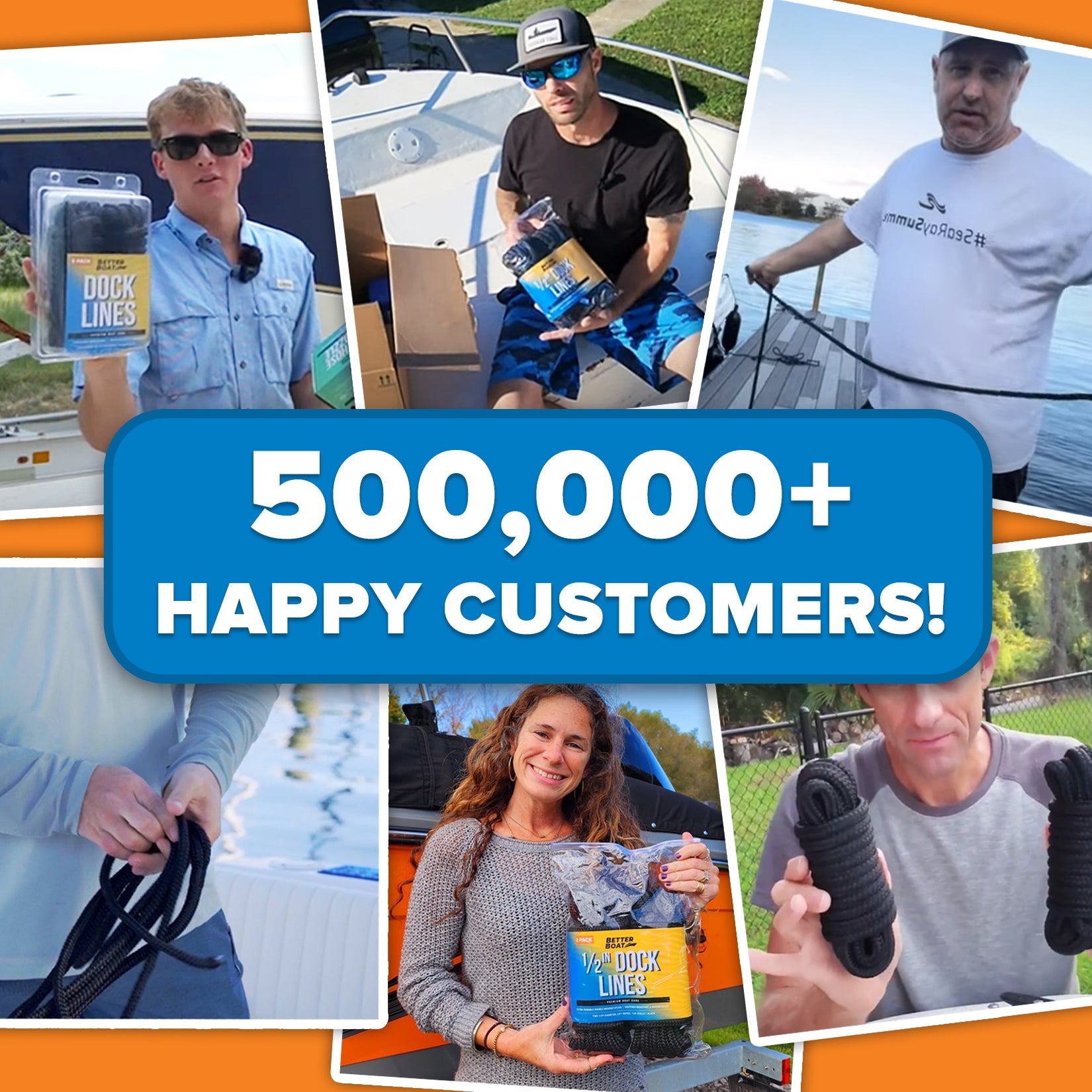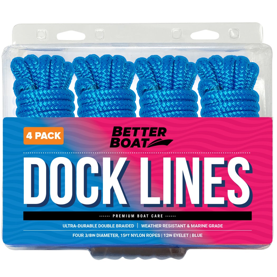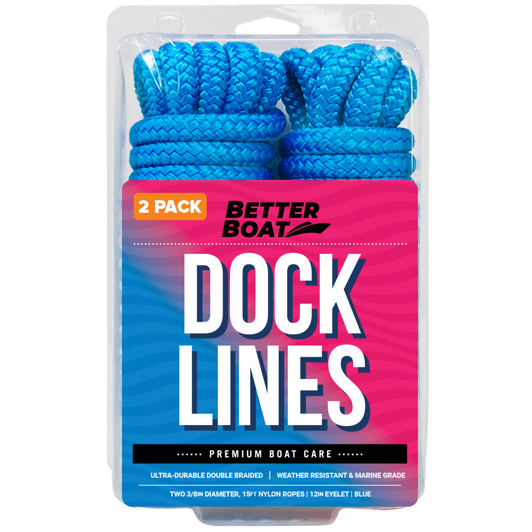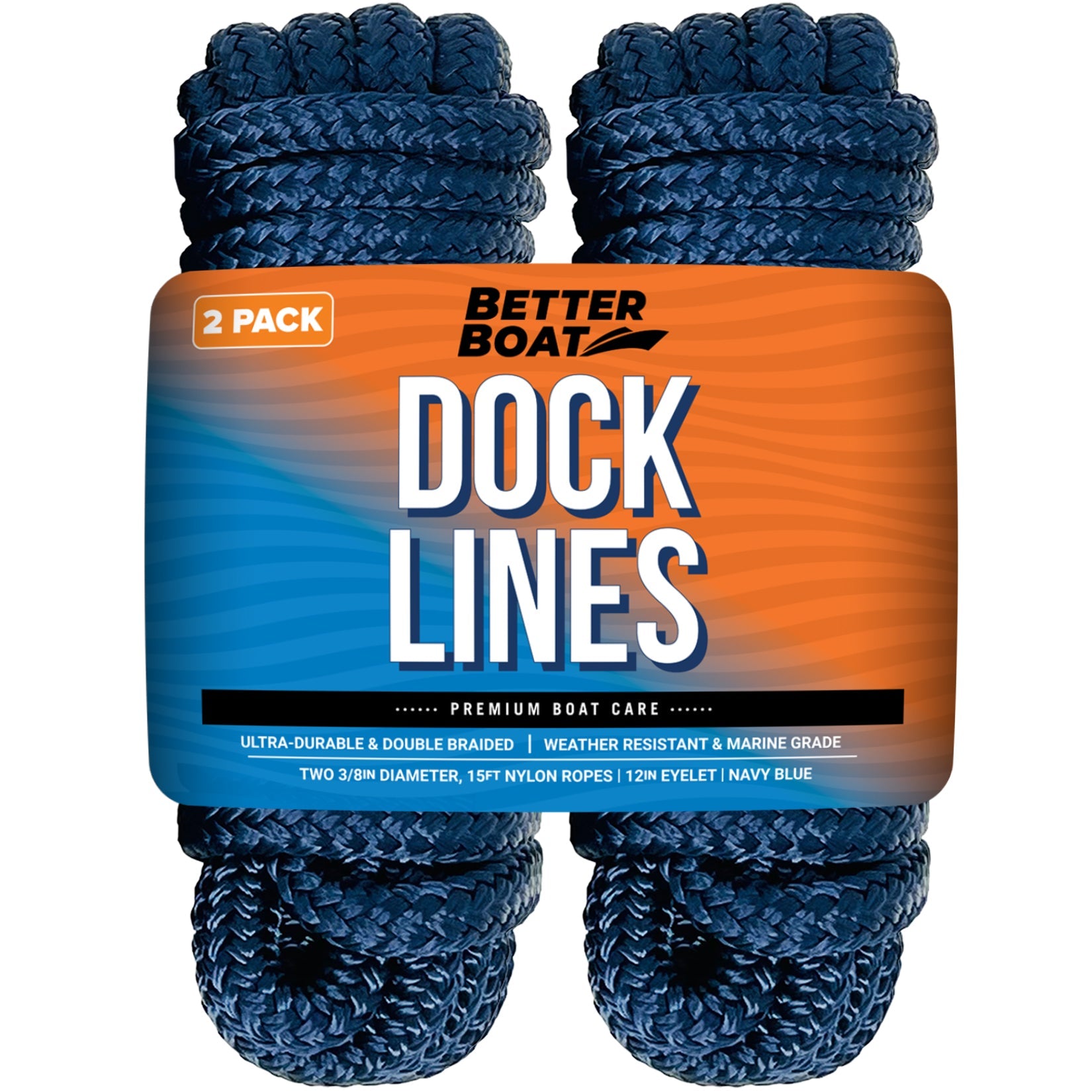 Made from marine-grade double-braided nylon that is ultra-strong and durable. Our 3/8" thick boat dock lines are 15 feet long with a 12 inch professionally whipped and heat-treated eyelet at one end. This premium-grade marine nylon rope provides superior shock absorption and elasticity to secure boats in high waves and rough weather. Sun, salt and water-resistant to last for seasons. Try them risk-free for 30 days - love them or get your money back!