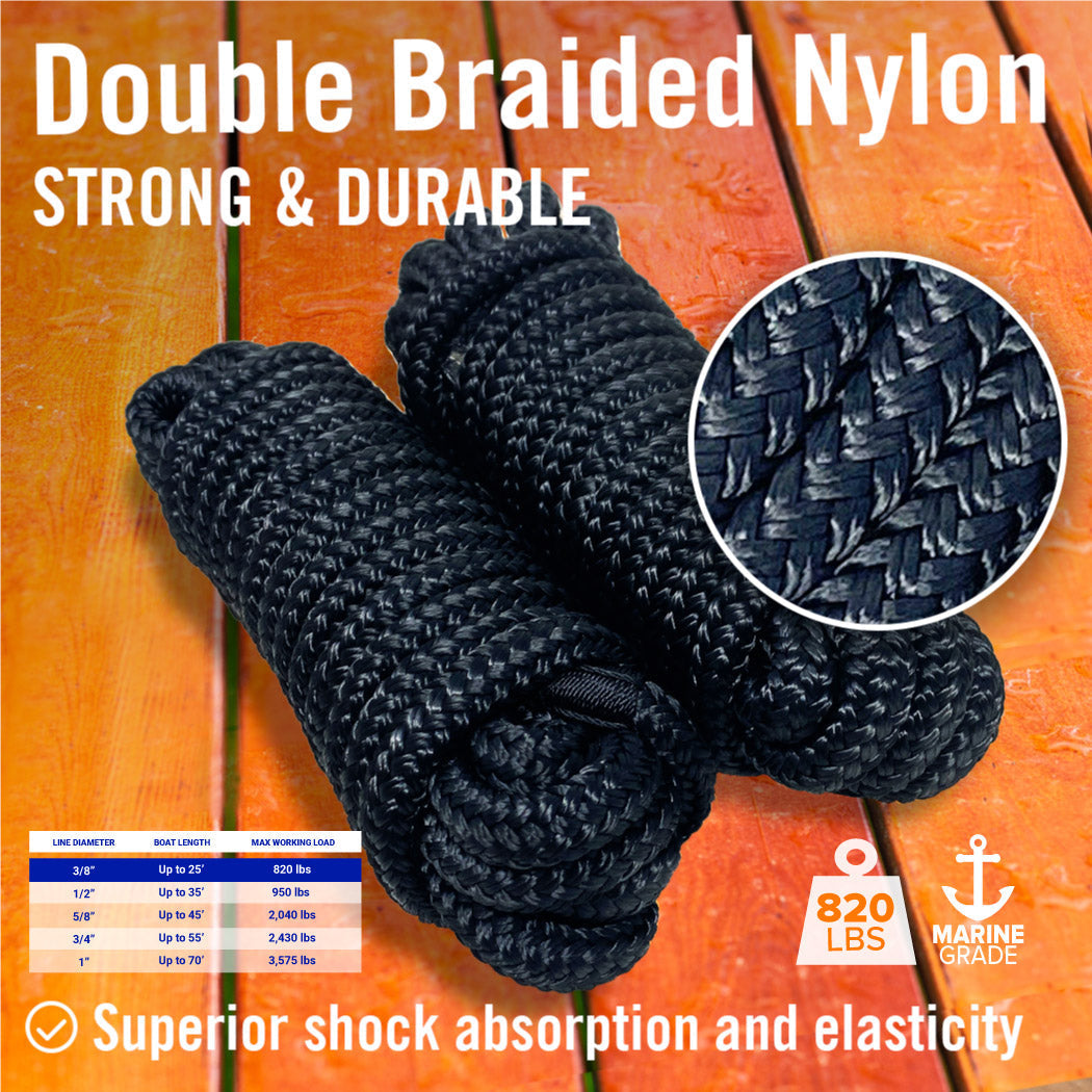 • Marine-Grade Double Braided Nylon: Ultra-durable, premium-quality nylon rope that is sun, salt & water-resistant to last for seasons.