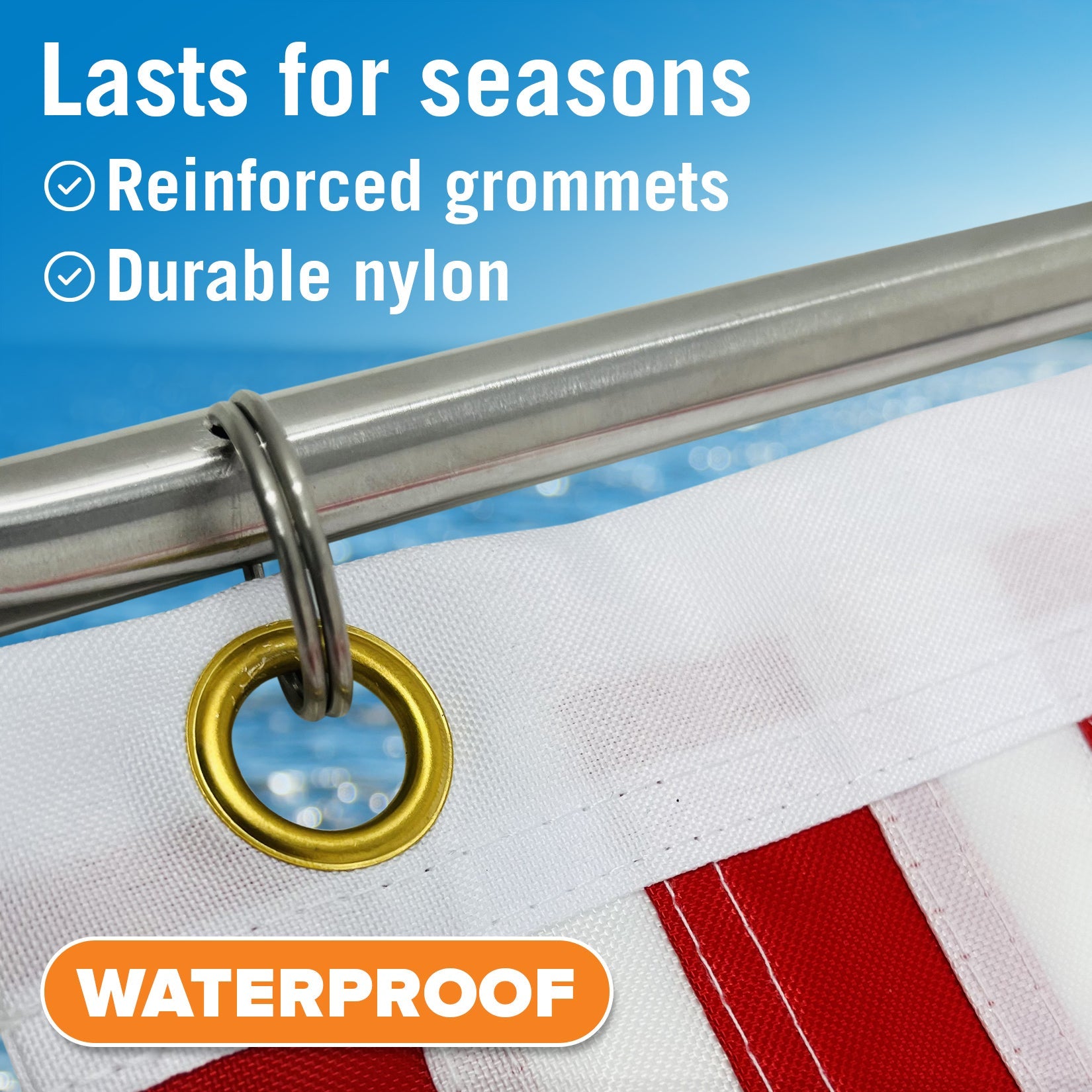 - Embroidered Stars & Sewn Anchor Flag: The small American boat at anchor flag features the boat anchor emblem and 12 embroidered stars and sewn stripes, unlike cheap alternatives! Made with durable nylon and long lasting reinforced grommets. USA flag