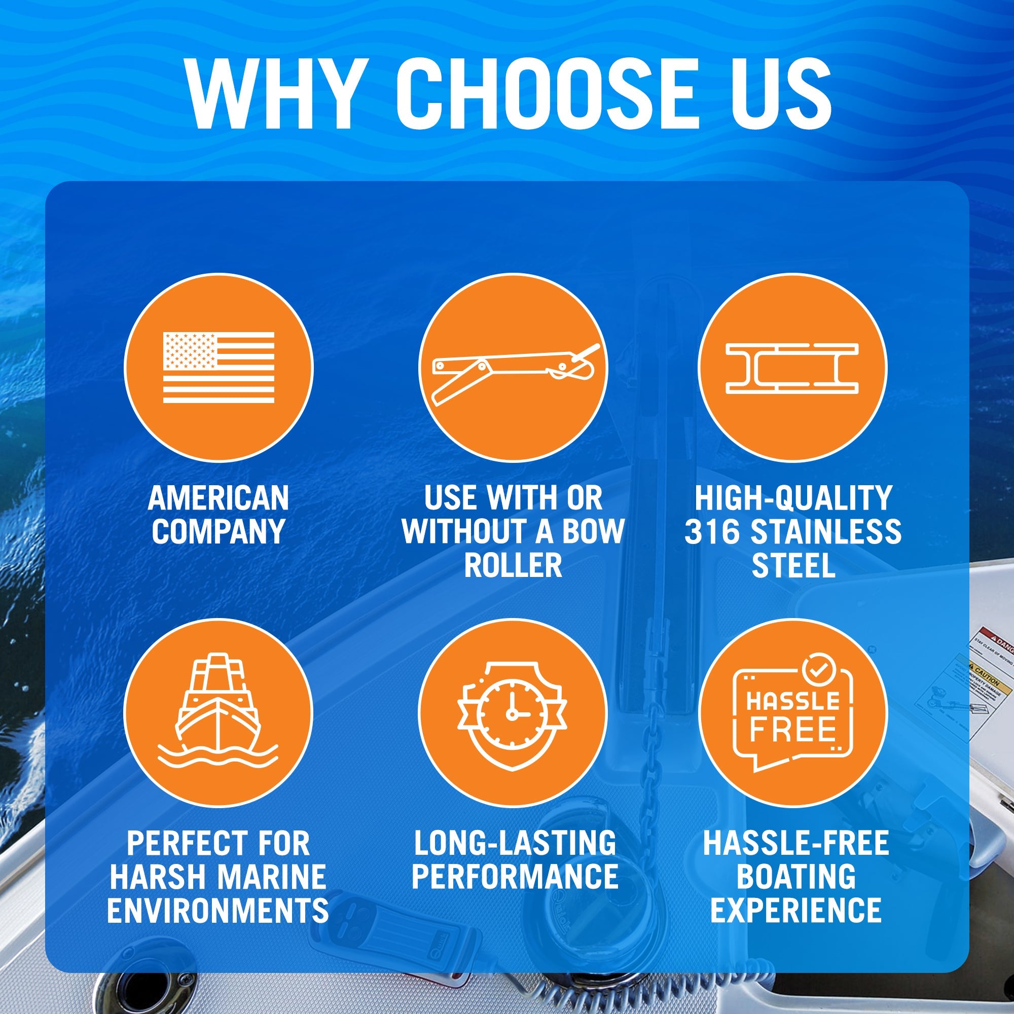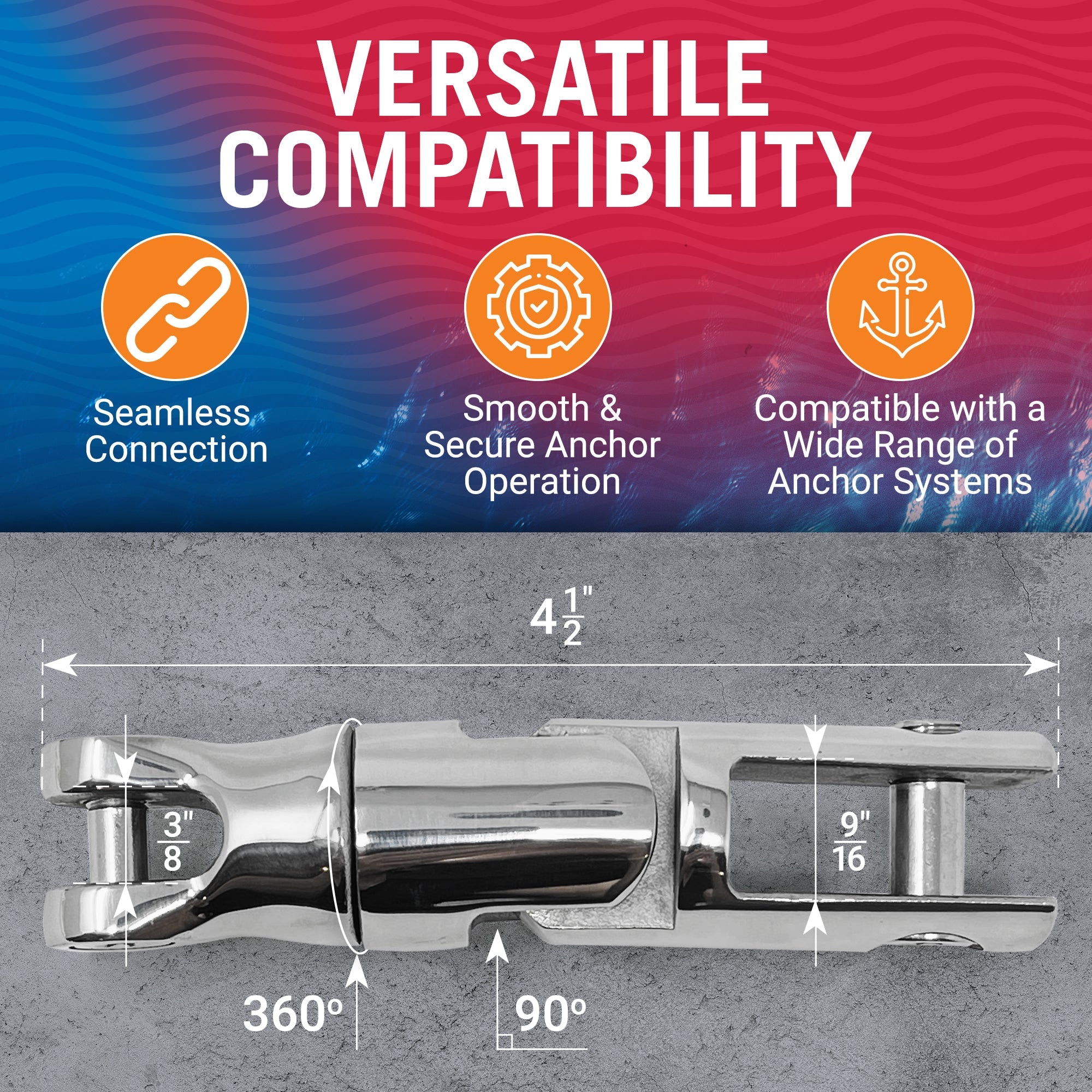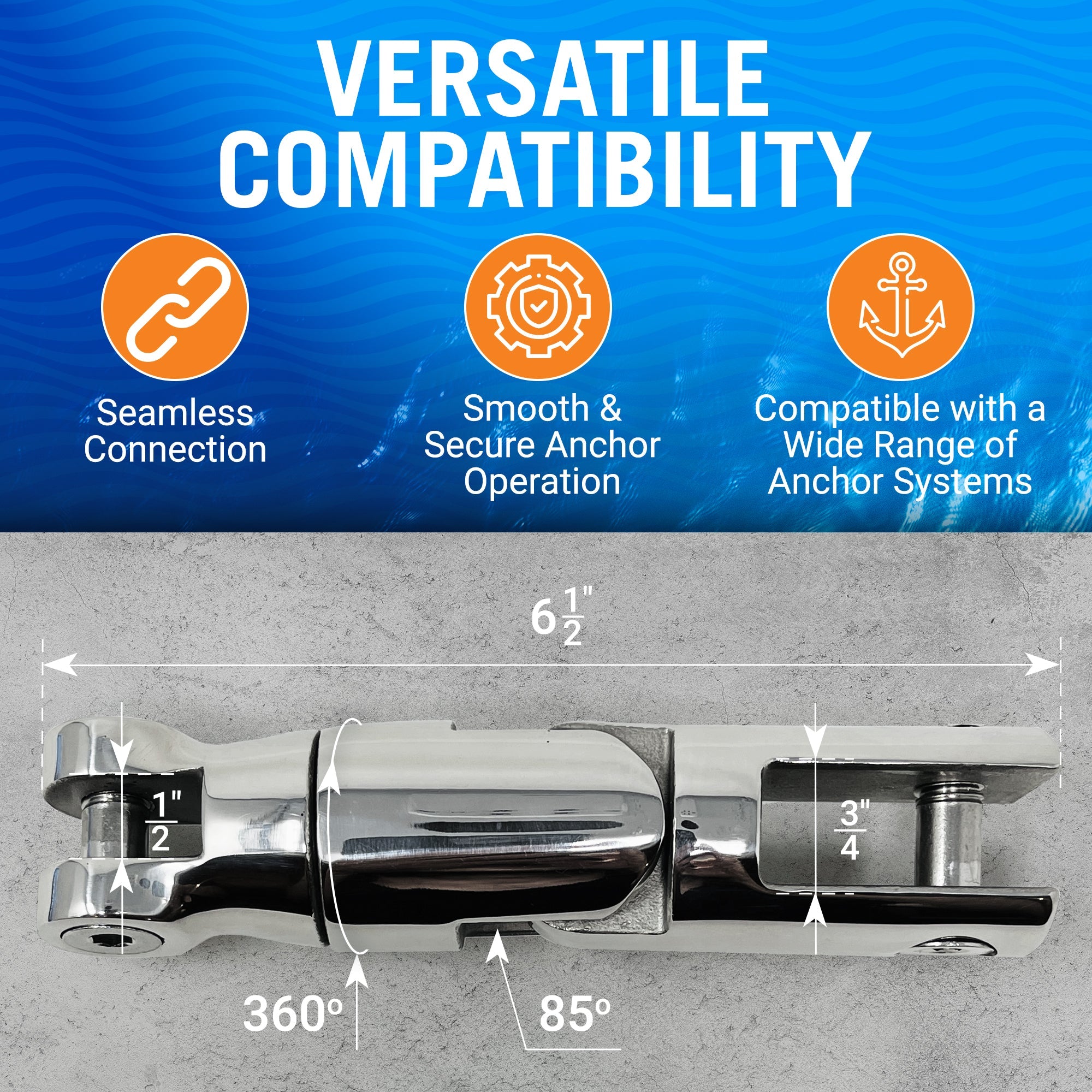 EFFORTLESS AND RELIABLE: Experience smooth and dependable anchoring with our chain swivel, which effectively prevents twists and kinks. Enjoy a trouble-free time on the water, whether you're setting an anchor or utilizing a bow or anchor roller.