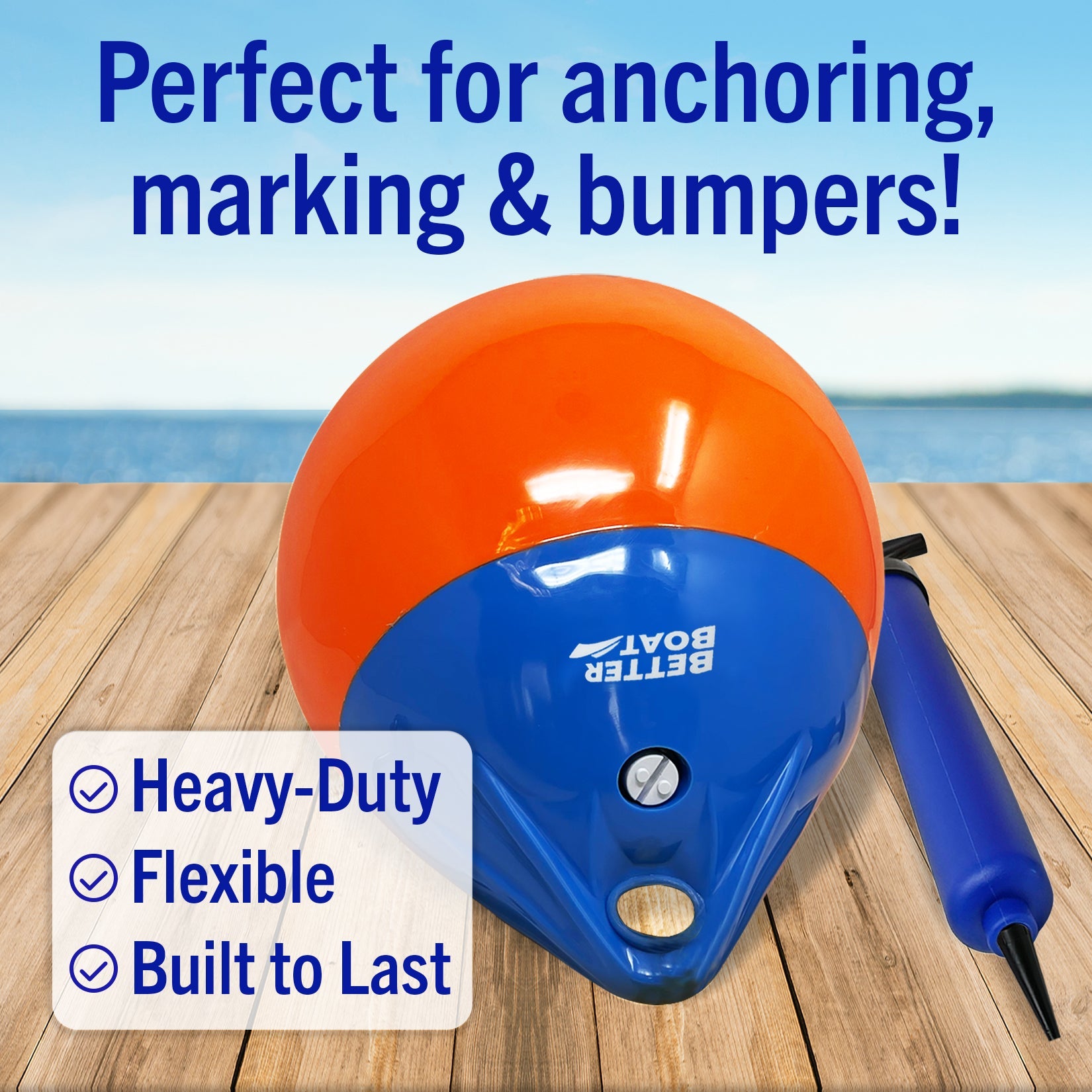 - DURABLE DESIGN: Constructed from sturdy vinyl, our buoy withstands marine conditions and acts as a reliable boat bumper, resisting fading and wear for lasting durability.