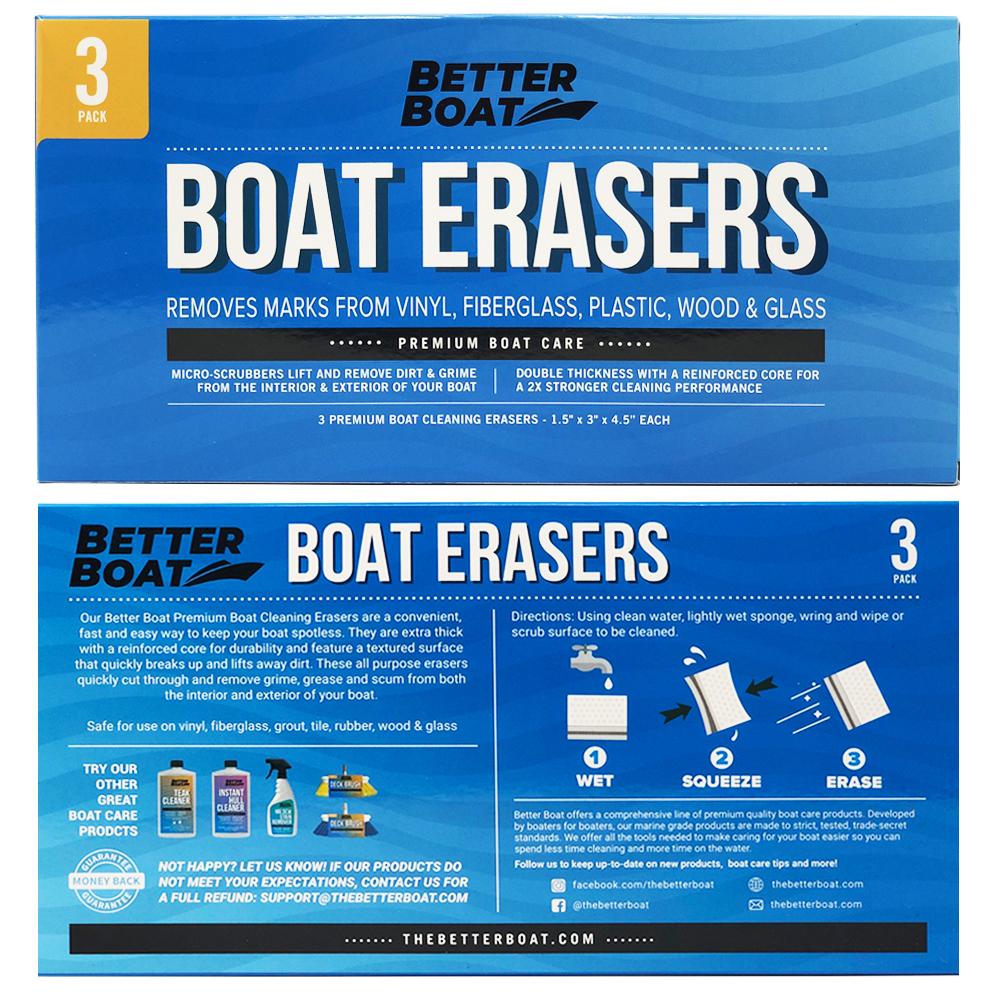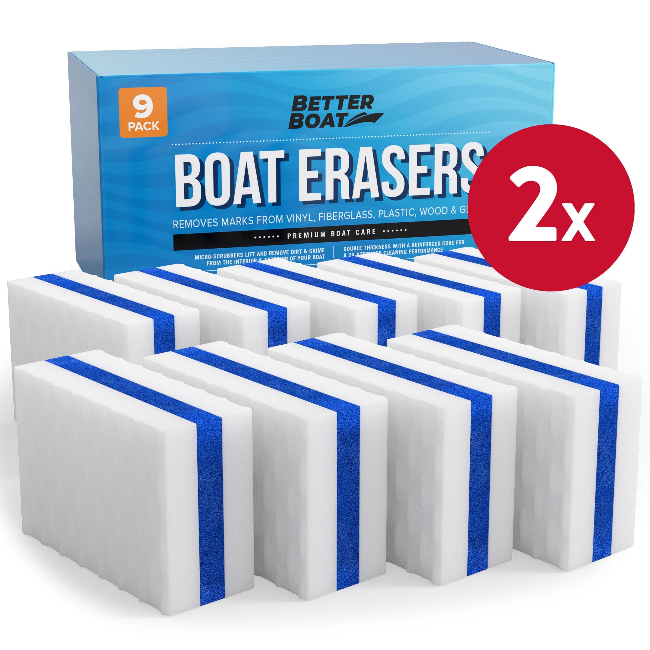 Fast and easy clean! These Better Boat scuff erasers quickly removes marks and grime with water alone. Reinforced core for 2x durability. Textured surface tackles tough stains. Simply wet, squeeze and wipe away dirt. Perfect for a quick clean after a day on the water! Try risk-free for 30 days - love them or get your money back!