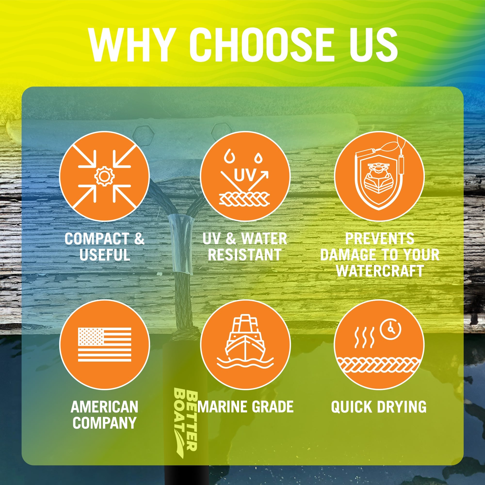 - ROBUST, QUICK-DRYING MATERIALS: Built to endure severe conditions, our marine-grade boat accessories feature double braided, UV-resistant dock ropes suitable for vessels up to 4000 pounds, with a tensile strength of 2200 pounds.