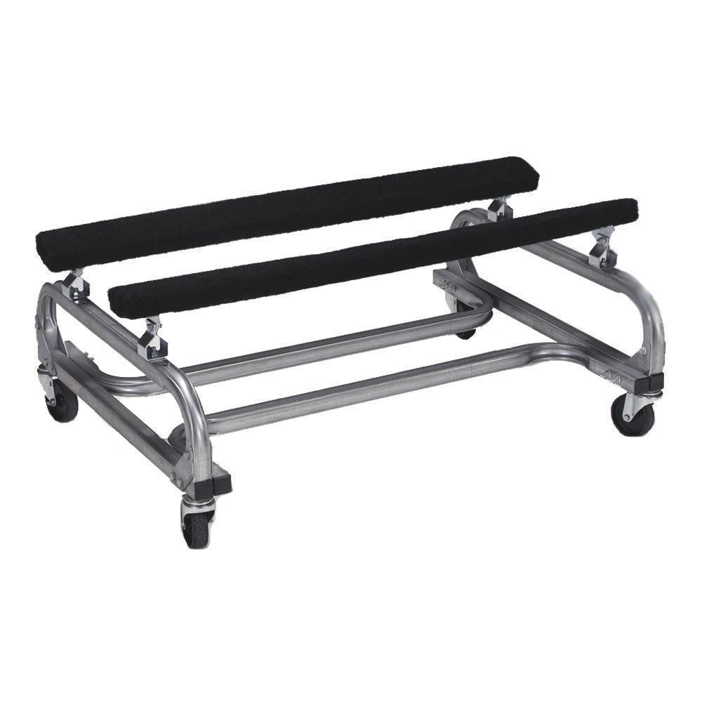 Great for storage or maintance. This heavy-duty dolly is constructed with a strong galvanized tubular frame. Four rugged casters make it easy to move your PWC, jon boat, or inflatable. Two 4' carpeted bunks tilt and adjust to 12", 16", or 20" widths. Supports up to 1,000 lbs. Comes with hardware and assembly instructions. 34" W x 48" L x 19" H."