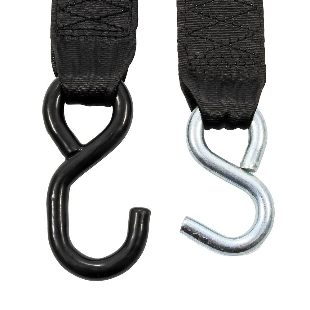 High quality maximum strength tie down straps will support and safely secure boats, motorcycles, atvs, furniture, cargo, equipment, machinery and much more with 2,500 lb break strength and 833 lb working strength.
