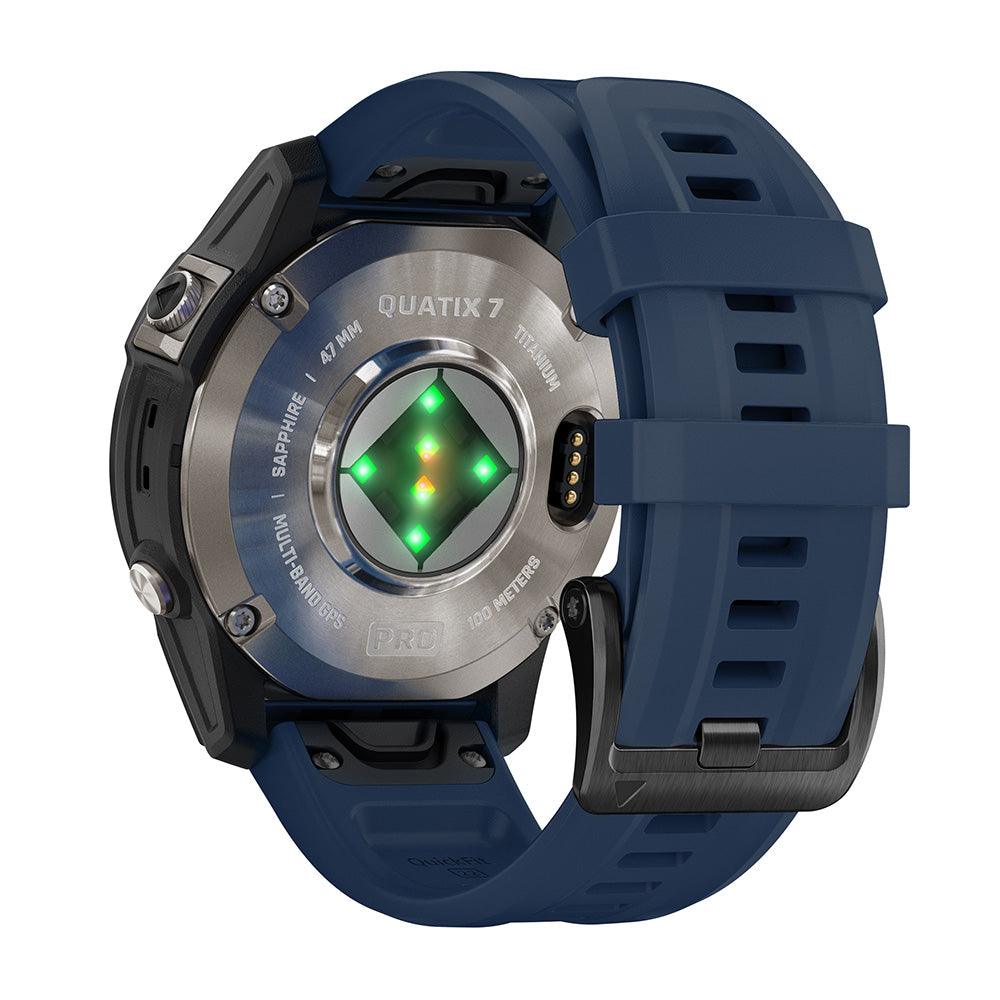 The quatix 7 Pro smartwatch supports premier coastal charts featuring integrated Navionics® data (sold separately).