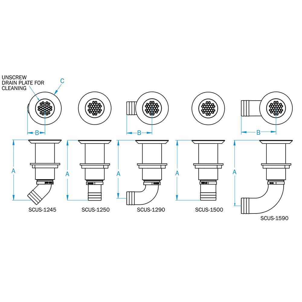GROCO 1-1/4" Hose Barb Stainless 90 Degree Deck Drain