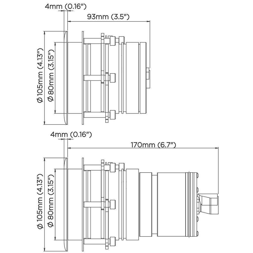 The ultra low profile outer face of the housing is designed for vessels wanting to go fast and have no impact on speed or flow of water over the hull, perfect for the sides or running surfaces.