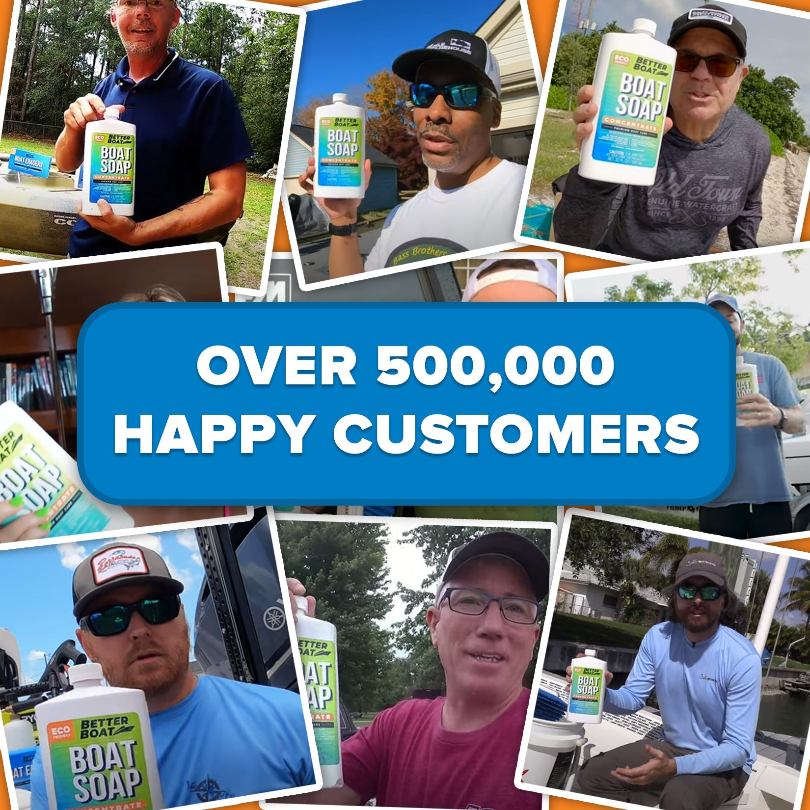 All-purpose boat wash soap that works great to clean everything above and below deck. It quickly cuts through stubborn grime and rinses residue-free to leave surfaces sparkling clean. This concentrated formula goes a long way making it a great value. Get up to 40 washes per bottle! You can feel good about choosing this 100% eco-friendly, biodegradable boat wash soap because it won't harm marine life or contaminate the water. Try it risk-free for 30 days - love it or get your money back!