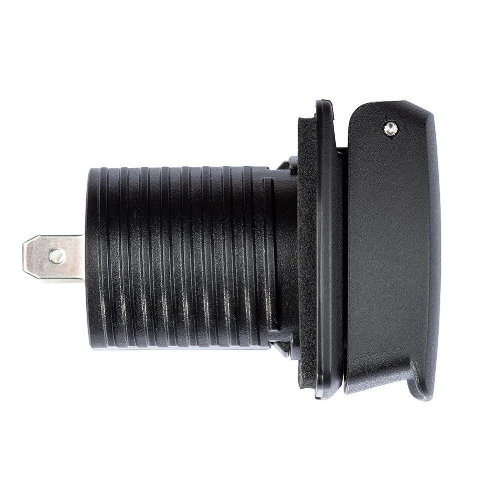 Flip Pro 12V Power Socket takes onboard power delivery to a new level, featuring a IPX4 spring loaded lid, and an impressive 150W max power on a 12V system. When not in use, the spring-loaded cap remains tightly closed, protecting the socket from the elements. When in use, it quickly locks open to protect your cables when plugged in.