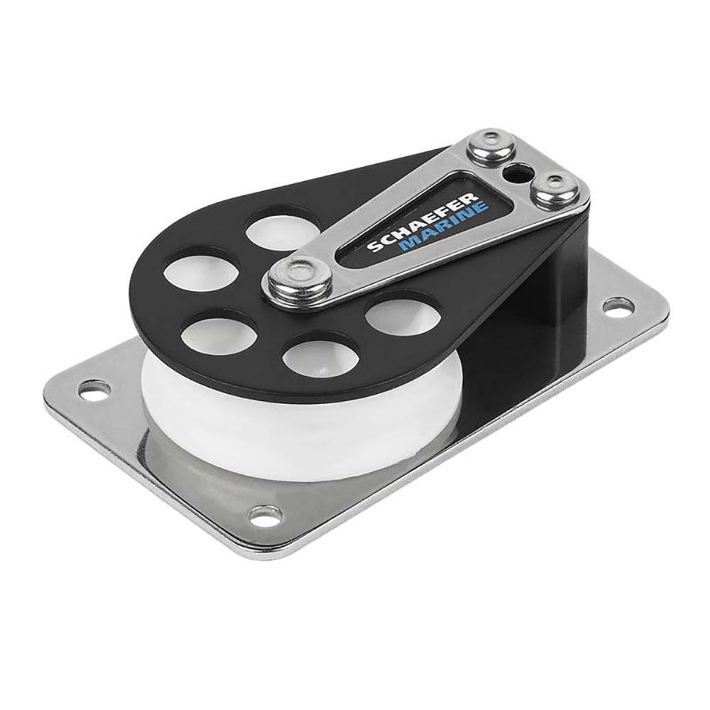 Delrin™ sheave ensures smooth operation and high safe working load. Stainless steel base distributes loads to a large surface area.