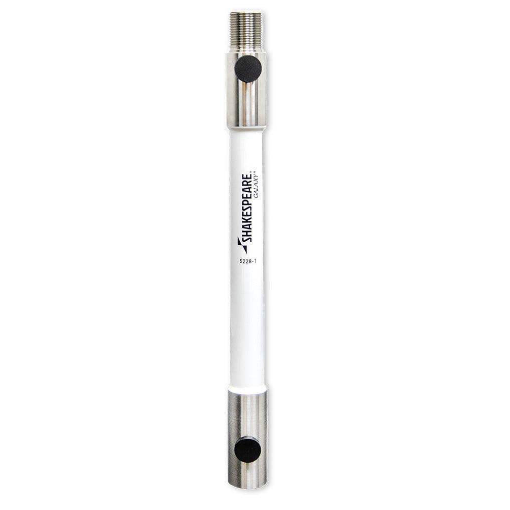 One foot length. Constructed of high-quality Shakespeare white fiberglass, and finished to match Galaxy antennas. This 1 " diameter extension mast can be used to increase height of an antenna and thus improve effective range, or to boost placement of an antenna above on-board obstructions. For light to moderate applications. Excellent for use with GPS or TV antennas to clear on-board obstructions.